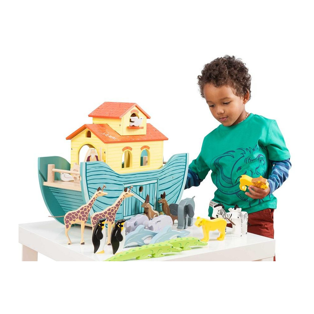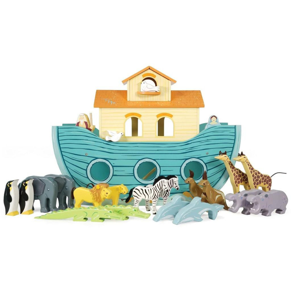 Tradiční hračka je připravena na plavbu dětským světem představivosti. Při hře můžete děti seznámit s příběhem Noema, jeho ženy a zvířat. Velká archa je opravdu detailní, deset párů zvířat je ručně malováno, stejně jako figurky lidí. Na přídi lodi výsuvný panel, díky kterému bude hra jednodušší, v trupu lodi odklápěcí dveře, díky kterým mohou zvířata na loď nastoupit i vystoupit. Pomůže s rozvojem zručnosti a kognitivních dovedností. Hračka bez obsahu plastu. Hračky s účelemVšechny hračky firmy Le Toy Van jsou vyrobeny s cílem – aby dlouho vydržely. Designovány s láskou zkušenými řemeslníky za použití etických praktik a udržitelných materiálů, které jsou laskavější k naší planetě. Hlavní vlastnosti: vyrobeno eticky z udržitelného dřevatestováno dle nejpřísnějších standardůmalováno netoxickými barvami na bázi vodyinspiruje k představivé hřerozvíjí kognitivní dovednosti Kolekce balančních arch: Tato kolekce má mnoho krásných detailů, vdechne zvířátkům život. Je vhodná od 12 měsíců do 3 let, pomáhá s rozvojem různých dovedností, například hra na role, zručnost, kognitivní dovednosti. V této kolekci jsou hlavní tři faktory – vkládání tvarů, balancování zvířátek a představivá hra. Všechny archy jsou inspirovány Noem a jeho zvířátky, tak ať si děti hru velmi užijí!