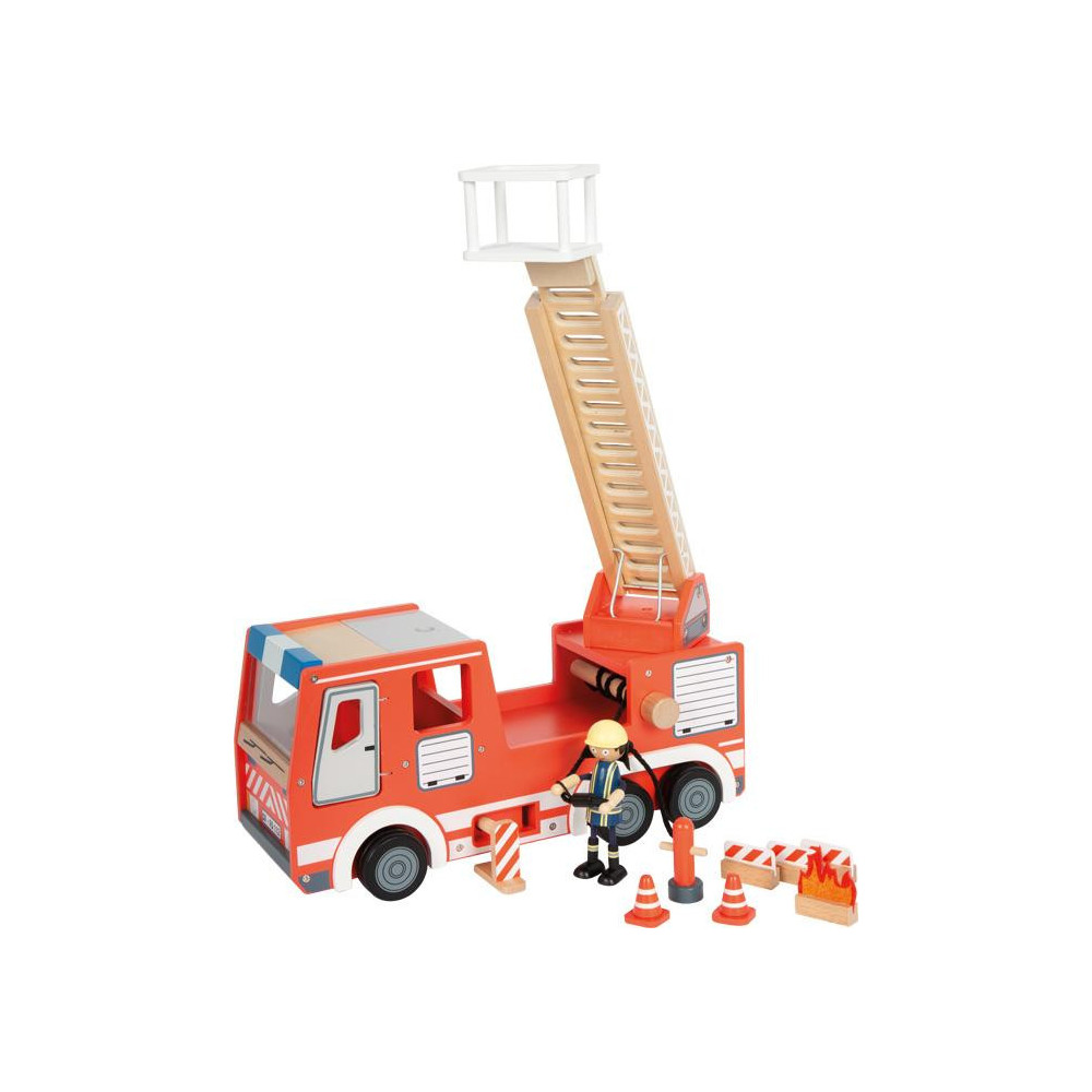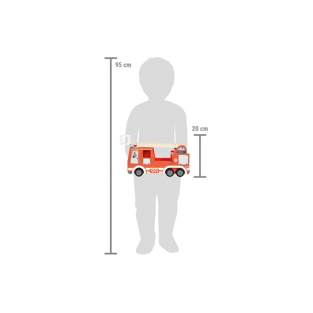 Velké hasičské auto, které přijede na místo, co nevidět! Navíc zaujme svými detaily a robustním zpracováním. Výsuvný žebřík s košem, který lze otáčet o 360 stupňů, umožňuje záchranné práce ve vysokých výškách a díky magnetu žebřík bezpečně uzamkne na místě. Výsuvné podpěrné nohy poskytují stabilní základnu, zatímco navíjecí hadice s magnetickým systémem a odpovídajícím hydrantem je připravena na akční hasičské mise. Otevírací střecha poskytuje úložný prostor pro širokou škálu příslušenství. V kabině řidiče s pohyblivými dveřmi je také dostatek místa pro přiloženou figurku hasiče (ohebná panenka s pohyblivýma rukama a nohama). Pogumovaná kola zajišťují tichou a bezpečnou cestu na místo další mise. Ať už se jedná o zabezpečení míst nehod pomocí bariérových zábran nebo o hašení požárů pomocí zatahovací hadice a rozprašovače vody, tato herní sada nabízí nespočet možností pro kreativní hraní na téma hašení požáru a záchrany. Funkční a detailní design zajišťuje obzvláště autentický zážitek ze hry.
