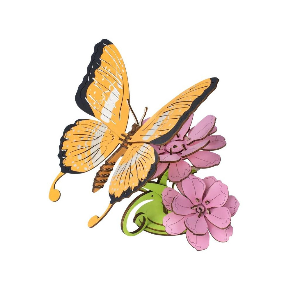 Woodcraft Dřevěné 3D puzzle Motýl na květech barevný