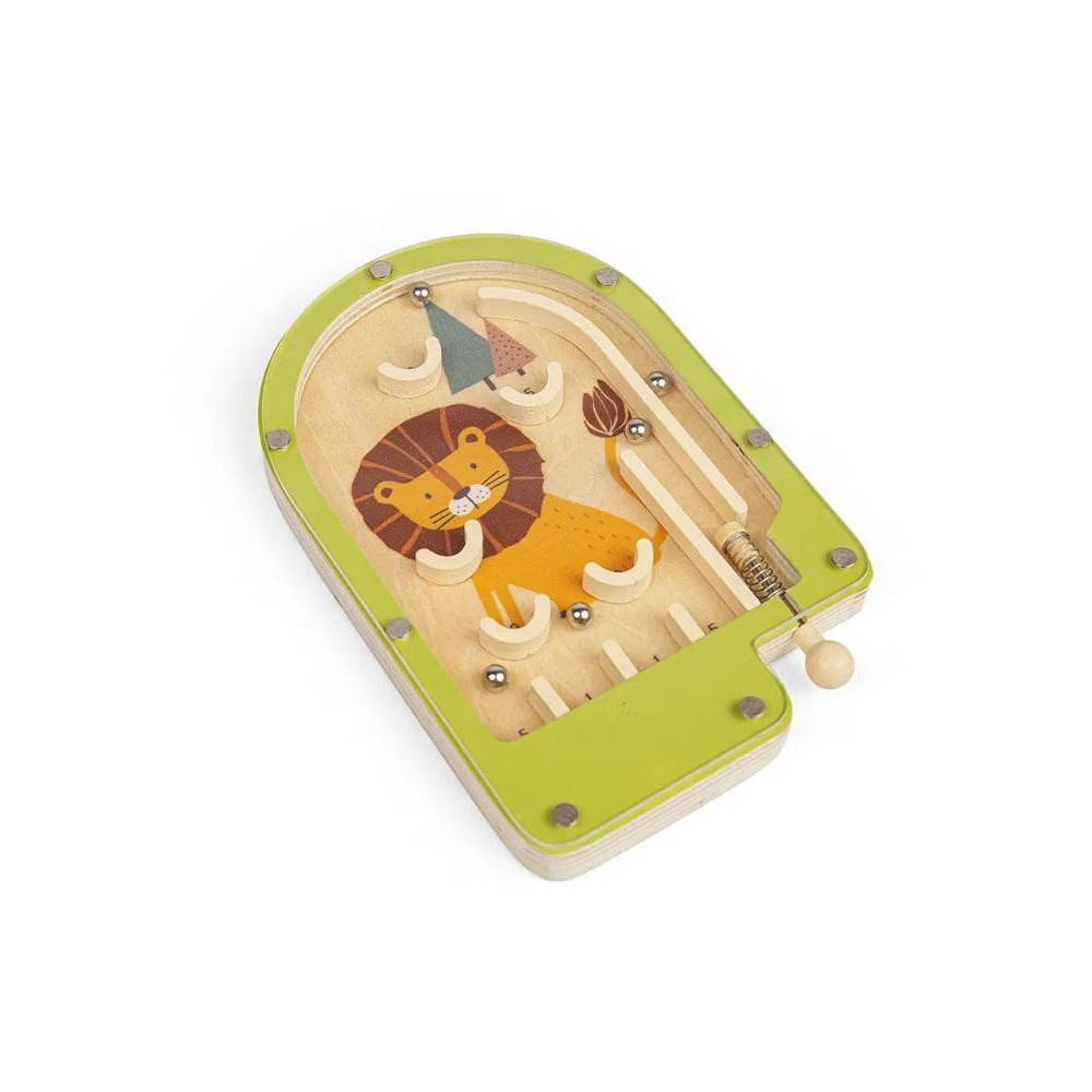 Klasická dovednostní hra s pěknou zvířecí ilustrací. Hra v mini velikosti přináší rychlou zábavu, ať jste kdekoliv. Jednoduše natáhněte pružinu a odpalujte kovové kuličky. Kolik se Vám podaří nasbírat bodů? Velikost pinballu je ideální pro zábavu při cestování. Vyrobeno z prvotřídního a udržitelného dřeva s certifikací FSC®. Barvené netoxickými barvami a laky. Splňuje aktuální evropské bezpečnostní normy.