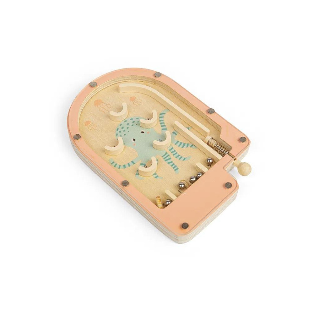Klasická dovednostní hra s pěknou zvířecí ilustrací. Hra v mini velikosti přináší rychlou zábavu, ať jste kdekoliv. Jednoduše natáhněte pružinu a odpalujte kovové kuličky. Kolik se Vám podaří nasbírat bodů? Velikost pinballu je ideální pro zábavu při cestování. Vyrobeno z prvotřídního a udržitelného dřeva s certifikací FSC®. Barvené netoxickými barvami a laky. Splňuje aktuální evropské bezpečnostní normy.