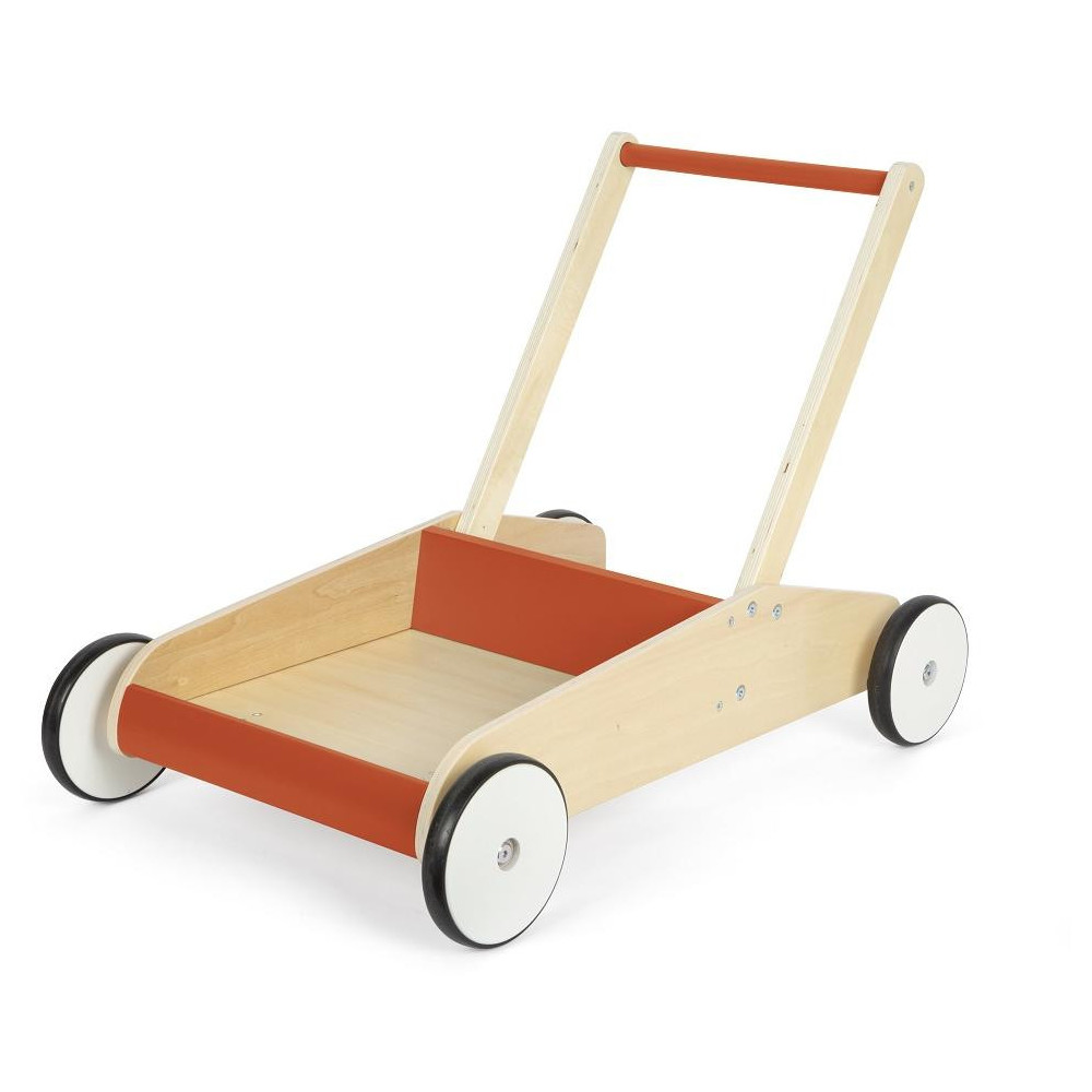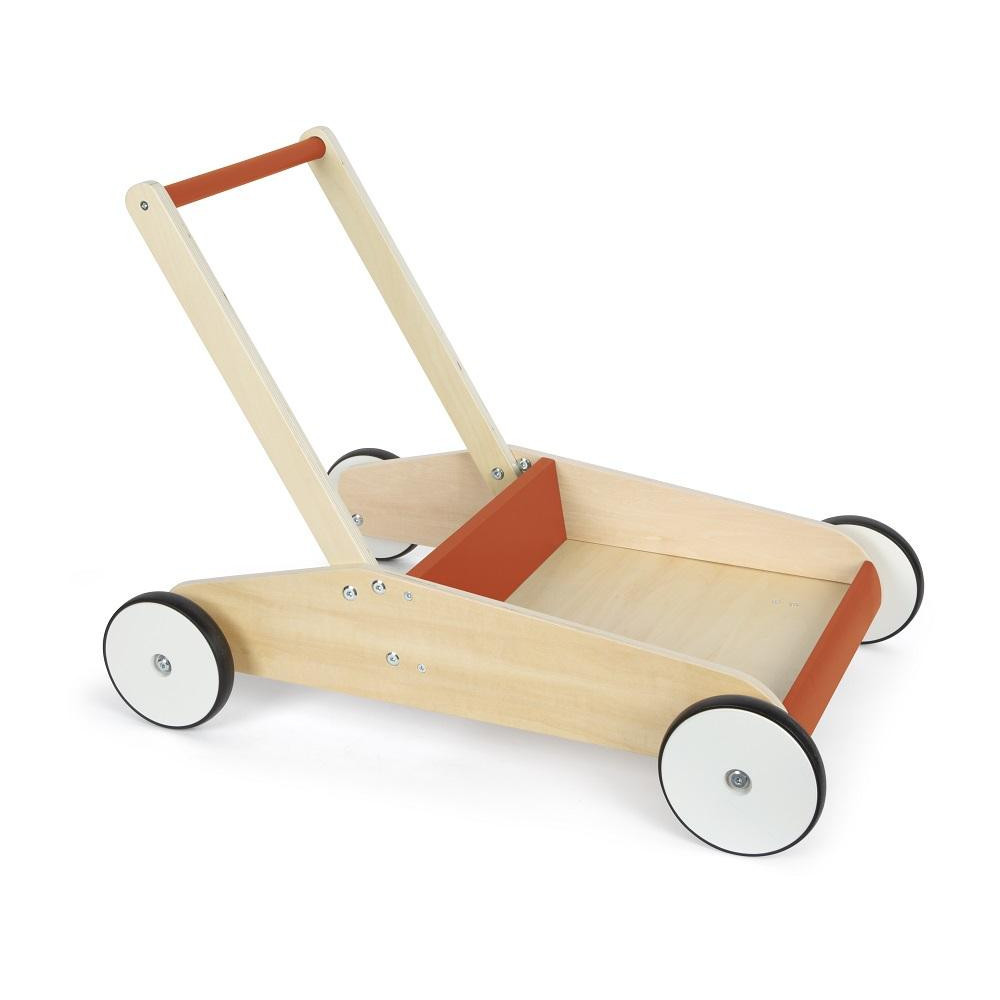 Ideální společník pro procházky i hraní. Toto dětské chodítko není jen hračka, ale také perfektní společník pro první krůčky malých dobrodruhů. Díky kombinaci přírodního dřeva a měděně červené barvě je také opravdovým poutačem pro oči v každé školce či pokojíčku. Vyrobeno je z vysoce kvalitního dřeva. Je pevné a praktické, s velkou úložnou plochou, která nabízí dostatek prostoru pro hračky, které doprovázejí Vaše dítě při jeho prvních krůčcích. Díky integrovanému brzdnému systému je manipulace s dětským chodítkem vždy bezpečná a přizpůsobí se vývoji a schopnostem dítěte při chůzi. Díky zaobleným hranám je i bezpečné. Pogumovaná kolečka jsou velmi tichá a také bezpečná. Chodítko má dvě výškově nastavitelné úrovně rukojeti a je tak ideální pro malé i velké děti, a může růst s nimi. Chodítko je vyrobené z laminovaného dřeva. Robustní a stabilní konstrukce pomůže dětem při jejich prvních krůčcích. Chodítko je nejen dokonalou pomůckou pro první krůčky miminka, ale také cvičební pomůckou smyslu pro rovnováhu. Dětská chodítka umožňují dětem hravou formou prozkoumávat své okolí a postupně rozšiřovat rozsah pohybu.