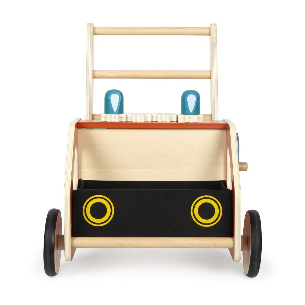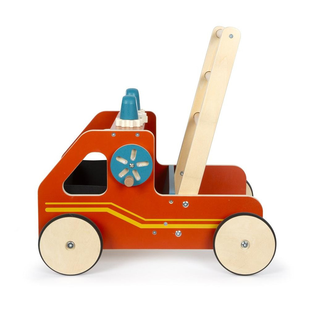 Robustní dřevěné dětské chodítko ve stylovém hasičském designu uchvátí každé dítě. Toto dětské hasičské chodítko je doplněno ozubenými koly, pohyblivými modrými světly a také otočným kolečkem s klikou na boku chodítka. Tyto přídavné prvky rozvíjejí motorické dovednosti dětí a činí chodítko ještě zábavnější při jejich prvních krůčcích. Chodítko je vybavené pogumovanými koly, která jsou velmi tichá. Díky brzdovému systému je chodítko bezpečné i při rychlejší jízdě. Toto hasičské chodítko děti nejen zabaví, ale i rozvíjí koordinaci ruka-oko.