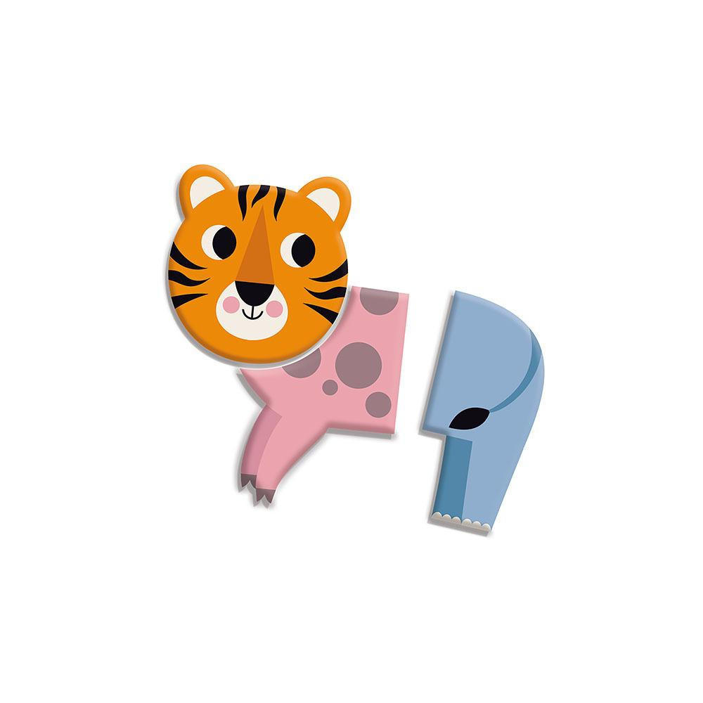 Sada dřevěných magnetů s nezaměnitelnými ilustracemi od Ingely P. Arrhenius. Charakteristickou barevností magnetky pomohou zútulnit Váš domov, zpestří magnetickou tabuli, nebo i lednici. Kvalitní potisk a odolné provedení zajistí dlouhotrvající zábavu. Magnetky představují 10 zvířátek složených ze třech kusů. Nakombinujte magnetky dle vlastní fantazie a vytvořte si legrační a nezapomenutelná zvířátka. Hlava tygra, tělo krávy a ocas slona? Proč ne? Vaší fantazii se meze nekladou. Rozvíjí jemnou motoriku a koordinaci ruka-oko. Podporuje kreativitu a představivost.