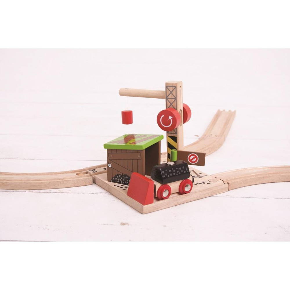 Tento uhelný důl s překladištěm zvýší dětskou představivost a hraní si na reálný svět! Set obsahuje dřevěný vagónek, jeřáb s magnetickou kladkou. Set slouží k překládání uhlí z důlního vagónku na železnici pomocí magnetického jeřábu.