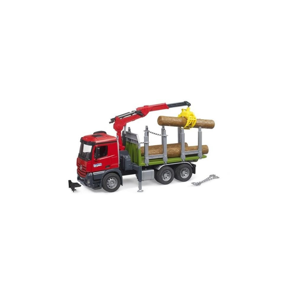 Nový Mercedes-Benz Arocs byl vyvinut tak, aby splňoval technické vlastnosti potřebné pro práci v jakémkoliv terénu. Nakládací jeřáb je vybaven drapákem na dřevo, který slouží k přemisťování klád. Drapák na dřevo lze v otevřené poloze zablokovat. Když je třeba uchopit kládu, spustí se na ni drapák dřeva a po uchopení se drapák automaticky zavře. Pro zajištění nákladu je možné použít vysouvací a spouštěcí podpěry jeřábu a řetězy na sloupcích nakládací plošiny. Sloupky lze samozřejmě také sklopit pro nakládání dřeva do stran. Vzadu lze nákladní automobil vykládat sklopením nakládací plošiny. Kabina má otevírací dveře, takže do vozu může nastoupit jakákoliv figurka z edice Bworld.
