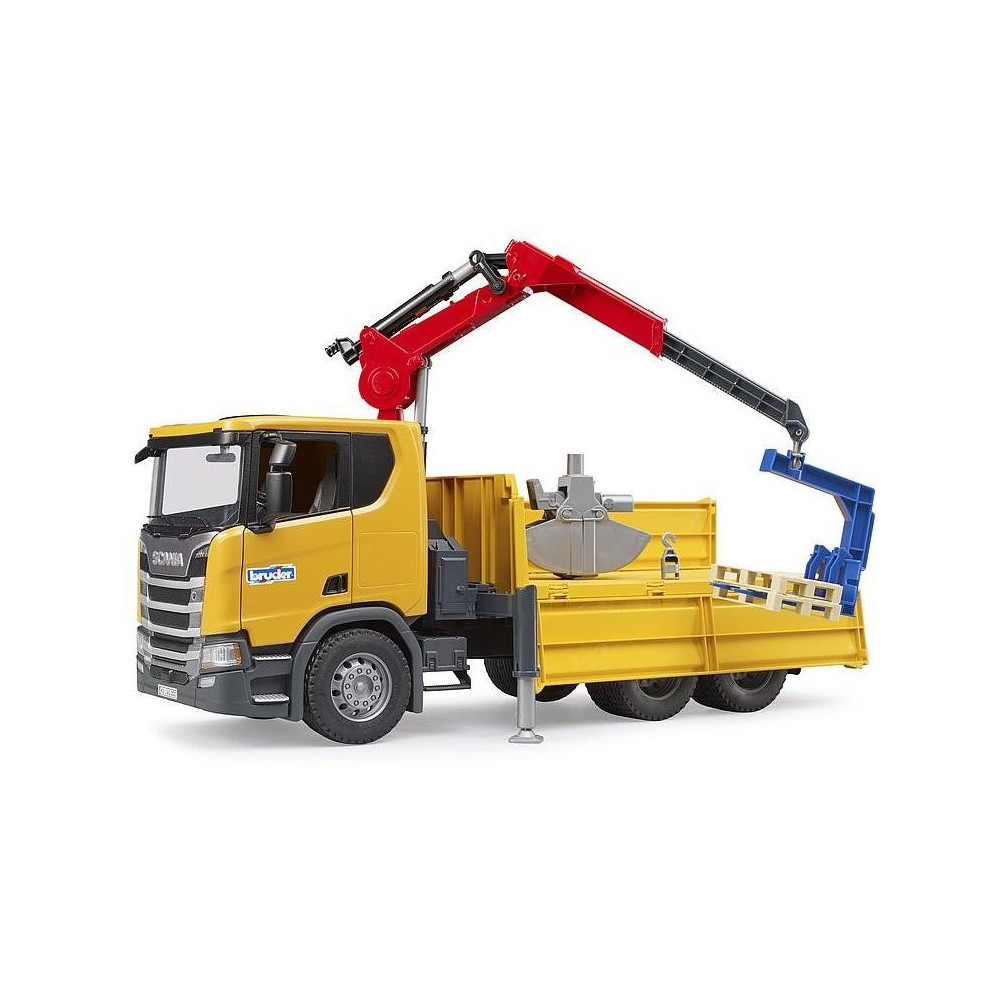 Stejně jako ostatní modely Scania, se i tento vyznačuje svou odolností a robustností. Nákladní auto má otevírací dveře, sklápěcí zrcátka a je vhodné na hraní doma i v terénu. Přední kabina tohoto vozidla poskytuje komfortní pracoviště všem figurkám ze světa bworld. Za kabinou můžete vidět nakládací teleskopické rameno otočné o 360. Pro snazší nakládání a vykládání poslouží sklápěcí bočnice a nakládací plošina. Stabilitu vozidla zajišťují podpěrné nohy. Součástí balení jsou dvě palety, paletové vidle a drapák s lopatou.