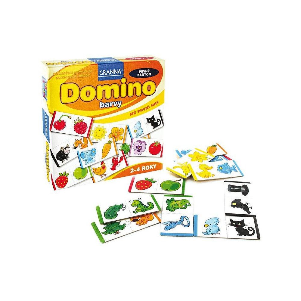 Na stole leží kartička domina. Na její jedné polovině je žlutá kačenka, na druhé polovině modrá rybka. Teď jsem na řadě já. Nemám žádné modré domino, ale mohu přiložit kartičku, na které je žlutý citron nebo žlutý banán. To jsou ale krásné barevné obrázky! Děti se učí poznávat barvy a pojmenovávat zvířátka. V návodu naleznete hru pro jednoho i více hráčů. Stejně jako ostatní hry ze série MÉ PRVNÍ HRY je Domino barvy vyrobeno z tvrdého kartonu. Doporučováno Asociací klinických logopedů ČR. Může hrát i jedno dítě!