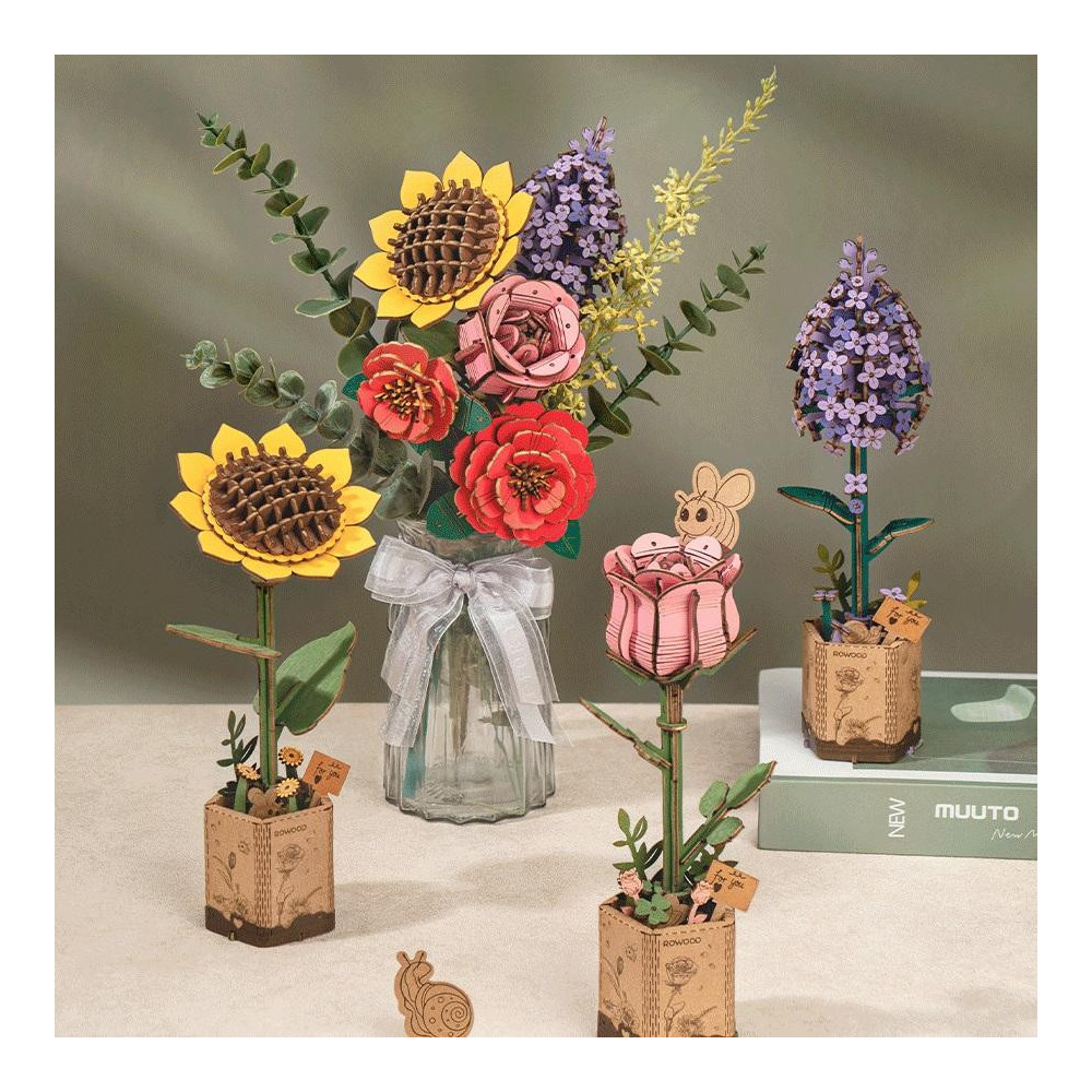 RoboTime Dřevěné 3D puzzle Růžová růže