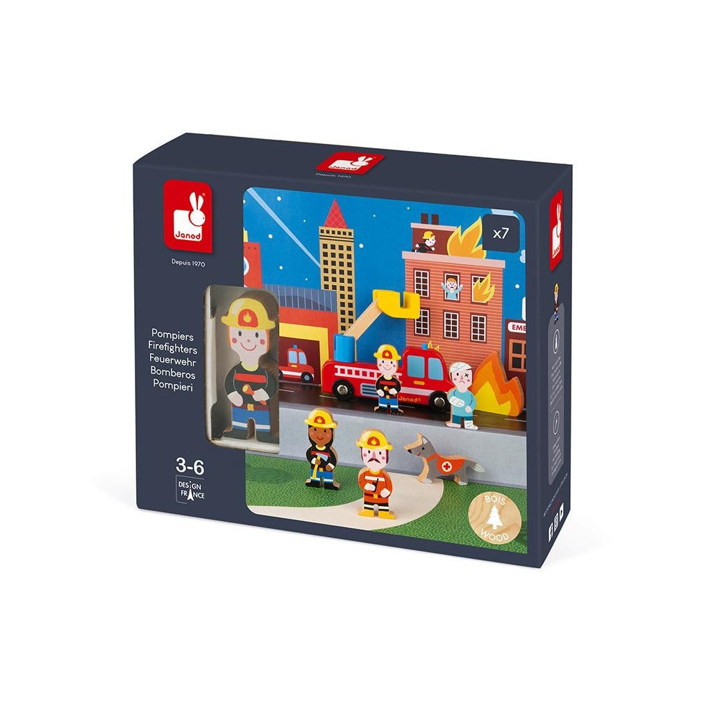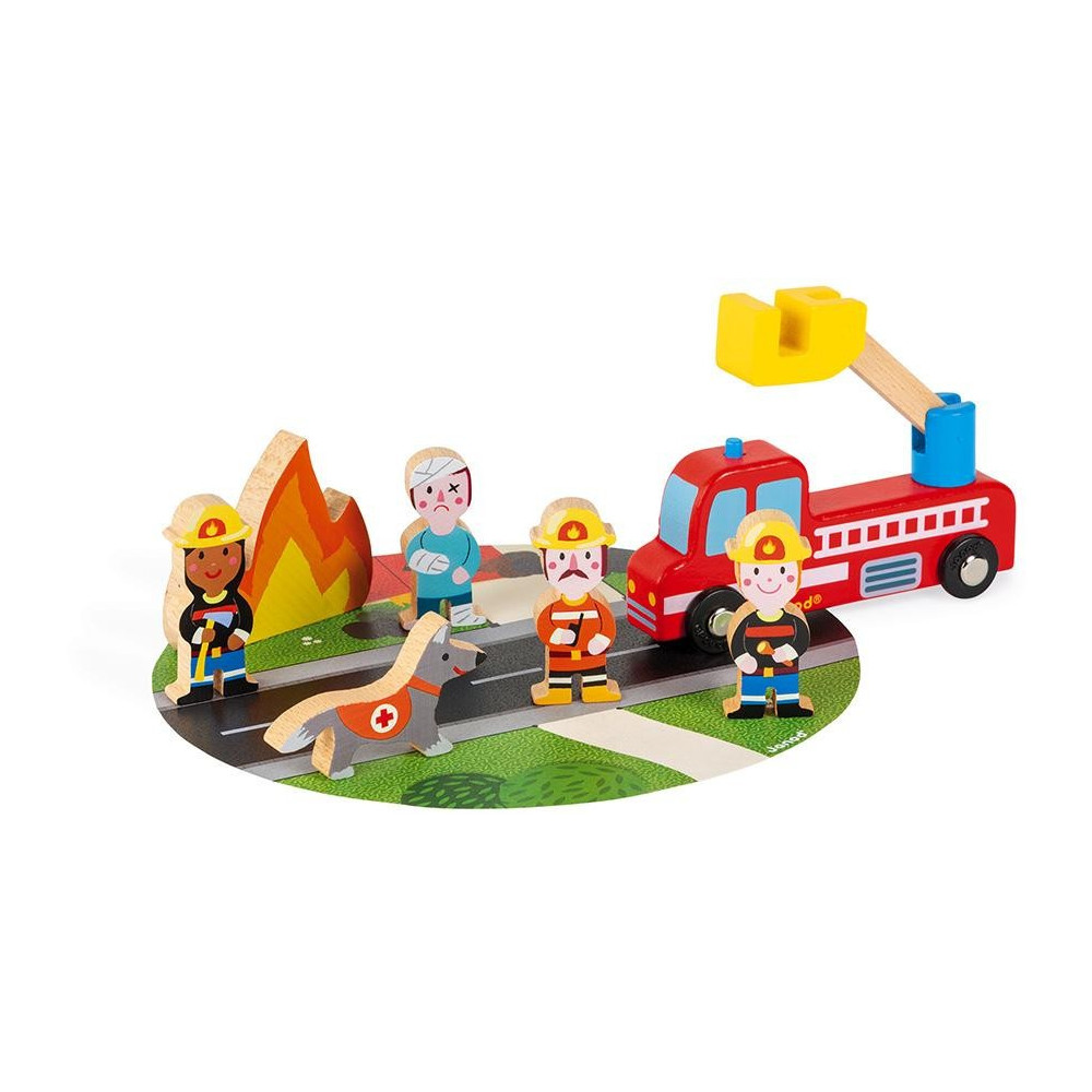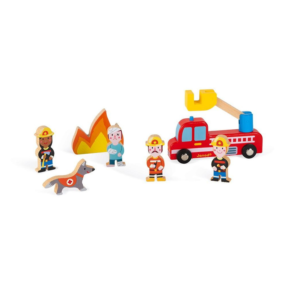 Dřevěné postavičky a zvířátka Hasiči Janod Mini Story je sada 7 ks dřevěných figurek. Děti si se sadou Mini Story vymýšlejí své vlastní příběhy a skvěle se při tom zabaví. Dřevěné pohádkové postavičky pomáhají nejmenším dětem rozvíjet fantazii a kreativitu. Sada 7 ks dřevěných postaviček se výborně hodí do školky nebo školy, zabaví se s ní několik dětí najednou. Vhodné pro děti: od 2 - 6 let Rozměr produktu: 12,2 x 3,6 x 7,5 cm Materiál: dřevo