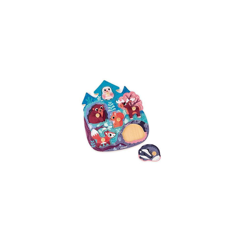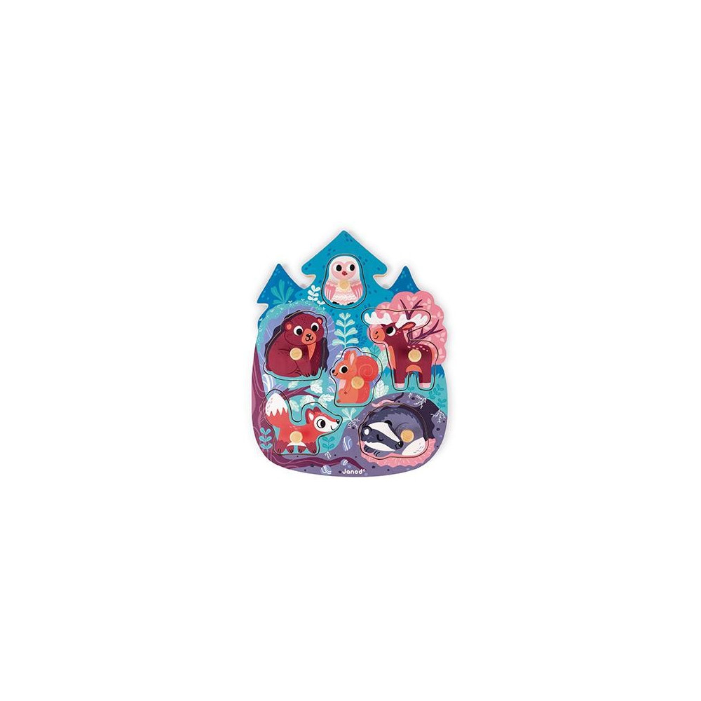 Detské drevené vkladacie puzzle s motívom Zvieratká v lese sú typom hračky, ktorú musí mať každé dieťatko od 1 roka. Puzzle majú drevenú úchytku pre trénovanie nožnicového úchytu a ľahkého uchopenia jednotlivých dielikov puzzle. Drevená vkladačka má 6 dielikov puzzle a pevnú dosku, do ktorej sa jednotlivé dieliky vkladajú. Vkladačka obsahuje zvieratká: sova, medveď, jeleň, veverička, líška, jazvec. Rozmer drevenej dosky: 22 x 2,4 x 28 cmVhodné pre deti od 1 roka