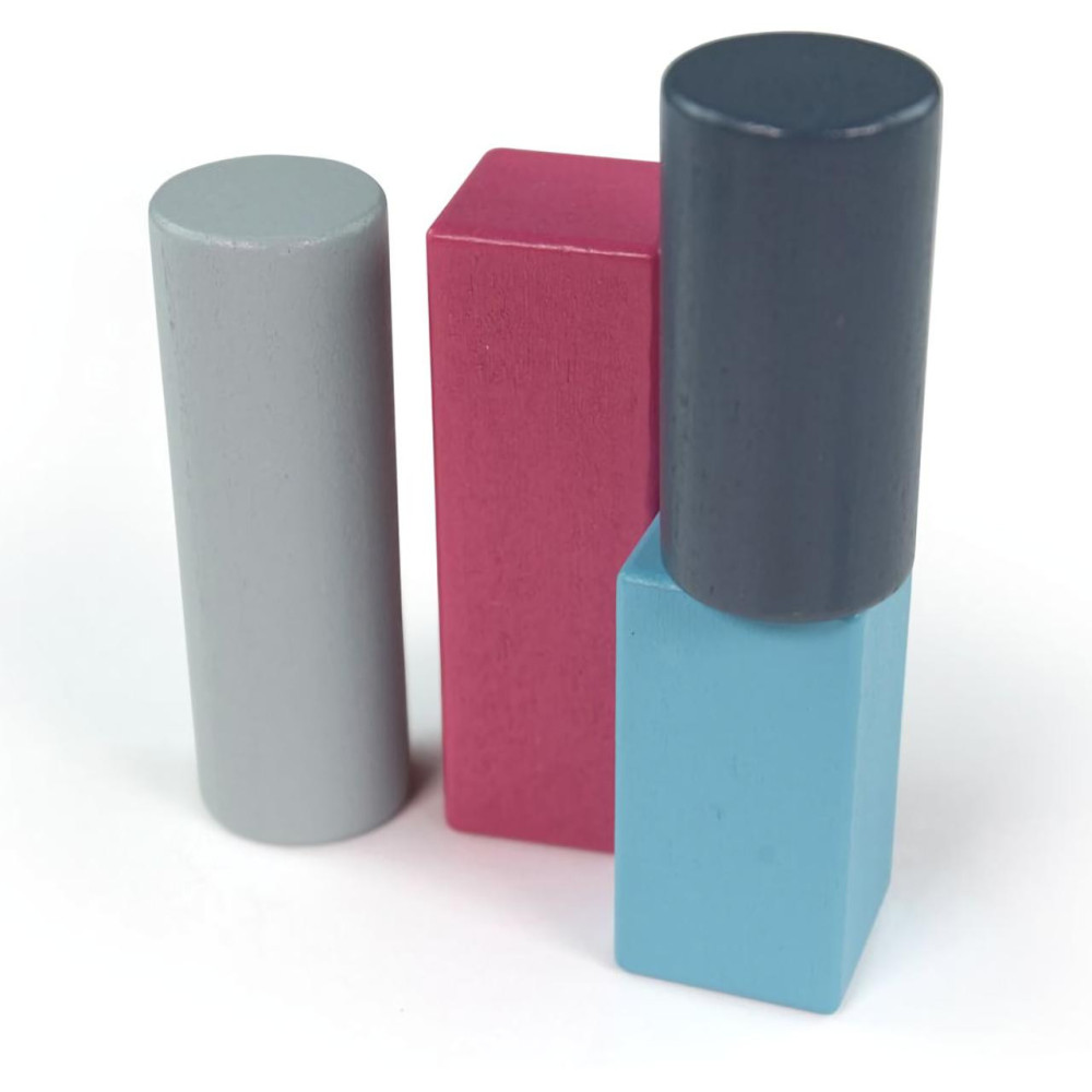 Sada kostek je přehlídkou tvarů, vzorů a barev, které mohou pomoci stimulovat dětské smysly a fantazii k budování rozmanitých staveb. Kostky jsou velikostí přizpůsobeny malým dětským ručkám, a usnadňují tak přirozený rozvoj soustředění a jemné motoriky. Díky zaobleným hranám a hladké povrchové úpravě je manipulace s nimi bezpečná a příjemná. Jsou vyrobeny z nejkvalitnějšího certifikovaného, odpovědně získaného dřeva z udržitelných zdrojů a ošetřeny nezávadnými barvami i laky.