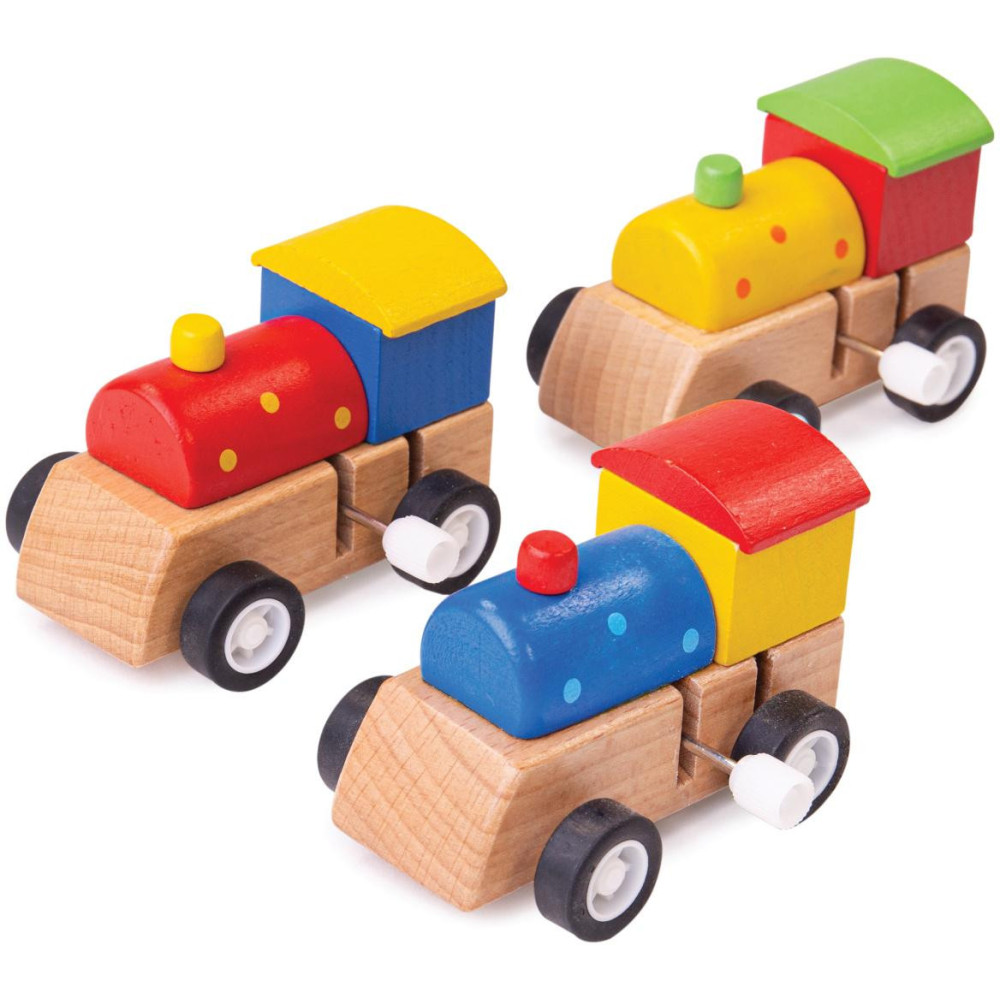 Bigjigs Toys Dřevěná barevná mašinka na natahování 1ks