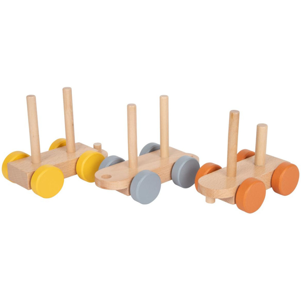 Složte jej a vyražte ze stanice! Tento dřevěný vláček v trendy barvách se rozjede až po nastoupení všech pasažérů – zebry, slona, žirafy a krokodýla. Vláček s mnoha detaily je zároveň nasazovací hračkou, která dává dětem volnost při skládání – každá kostka pasuje na více míst. Příští zastávka: Safari!