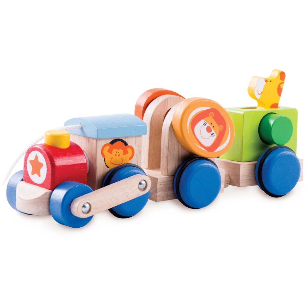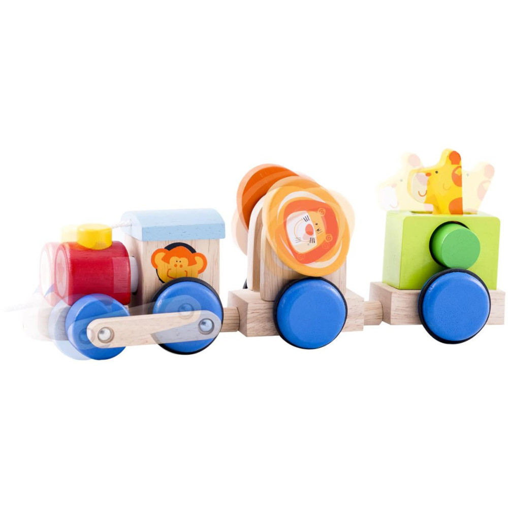 Safari vláček pomůže atraktivně stimulovat hrubou motoriku dítěte. Taháním se jednotlivé díly jedinečnými způsoby rozpohybují a motivují dítě k pohybu, pro tento účel je opatřen šňůrou. Atraktivitě přispívá výrazné barevné provedení umně kombinující přírodní a pestré barvy. Vláček je vyroben z odolného masivního dřeva. Hlavní vlastnosti:3 různé pohybové atrakceodolné provedení z masivního dřevavytříbená barevnost a povrchová úprava