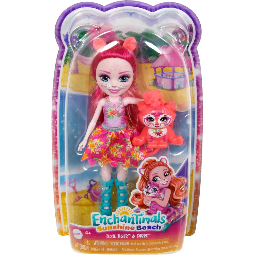 Mattel Enchantimals Sunshine Beach Panenka se zvířátkem Texie Tiger & Sabre
