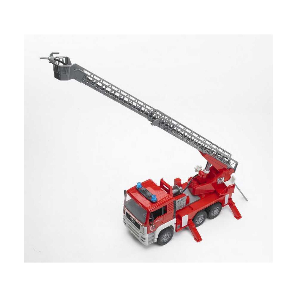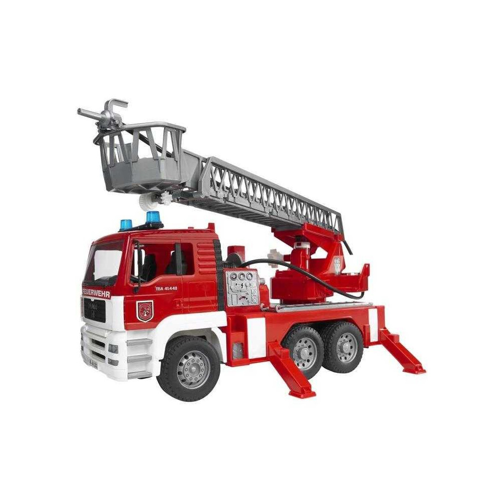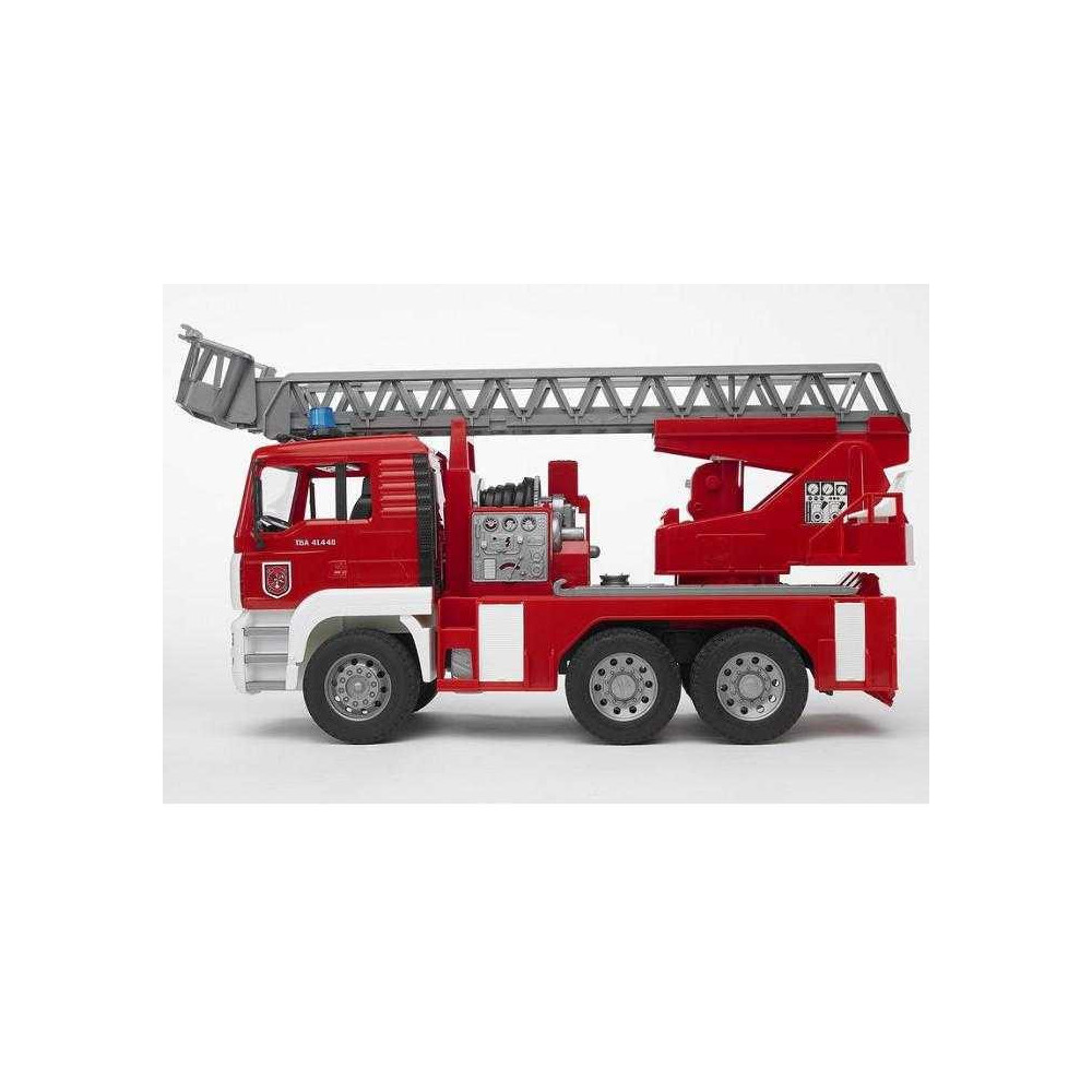 Bruder MAN TGA Hasiči se stříkačkou je propracovaný model vozidla s pevnými profilovanými pneumatikami, má plně sklopnou kabinu, je možno nahlédnout na blok motoru, je vybaveno plně funkční vodní pumpou a stříkačkou a především rozměrným výsuvným žebříkem. Rameno žebříku lze vysunout do délky až 80 cm! Plošina s výsuvným žebříkem je otočná, zrcátka u kabiny se dají sklopit a integrovanou nádrž na vodu lze jednoduše naplnit. Čtyři opěrné bloky zajišťují dokonalou stabilitu pro celé vozidlo i s vysunutým žebříkem. Zajímavostí na tomto vozidle je moderní multifunkční modul se světlem a zvukem. Vyrobeno v Německu, z kvalitních materiálů. Hlavní vlastnosti: plně sklopná kabinaplně funkční vodní pumpa a stříkačkarozměrný výsuvný žebřík do délky až 80 cmotočná plošina s výsuvným žebříkemsklopné zrcátkamoderní multifunkční modul se světlem a zvukemvyrobeno v Německu