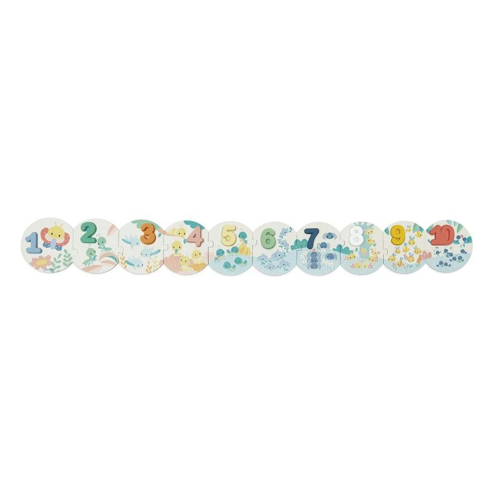 Naučte sa počítať so zvieratami! Každý kúsok puzzle zodpovedá drevenému číslu. Jednoducho spočítajte zvieratá a nájdite priradené číslo na dokončenie hádanky. Vaše dieťa sa bude učiť a zároveň sa zabávať! Na pomoc malým deťom je poskytnutá šablóna. Ideálne pre rozvoj jemnej motoriky. Detská hračka vyrobená z dreva FSCTM a kartónu, pre deti od 2 rokov.