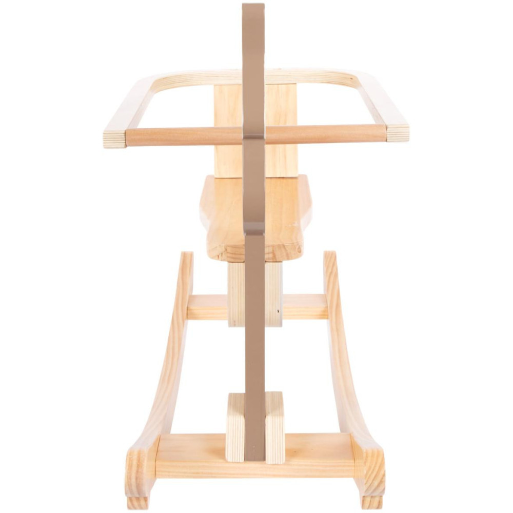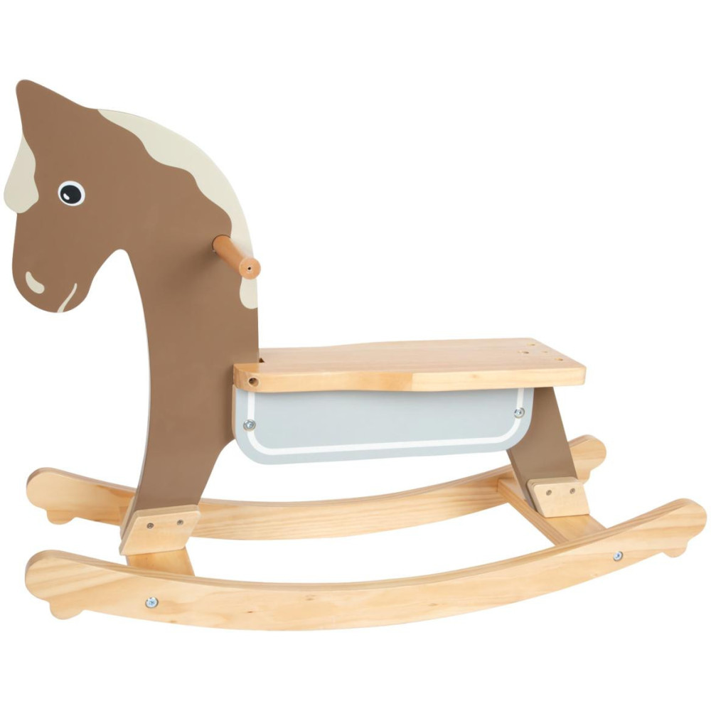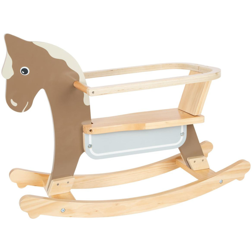 Vzhůru do sedel a cvalem kupředu! Houpací koník může dětem pomoci zesílit, rozvíjet koordinaci pohybů a rovnováhu. Pro zajištění maximální bezpečnosti je vybaven dorazy a opěradlem s hrazením, které lze snadno odejmout, jakmile dítě povyroste. Hračka je vyrobena z kombinace odolné překližky a masivního dřeva. Dává přitom vyniknout přírodním odstínům, a zútulní tak každý dětský pokojíček. Výrobek vyžaduje montáž, dodáváno s detailním návodem k sestavení.