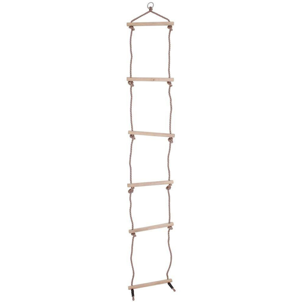 Tento odolný, tradiční provazový žebřík je ideální pro pomoc dětem rozvíjet jejich rovnováhu a lezecké dovednosti. Může být použit venku nebo uvnitř a má robustní dřevěné příčky. Skvělé pro zábavu a aktivní hraní. Vyrobeno z vysoce kvalitních, zodpovědně získaných materiálů. Splňuje aktuální evropské bezpečnostní normy. Při používání tohoto výrobku se doporučuje, aby děti všech věkových kategorií byly pod dohledem odpovědné dospělé osoby. Hmotnostní limit: 60 kg.