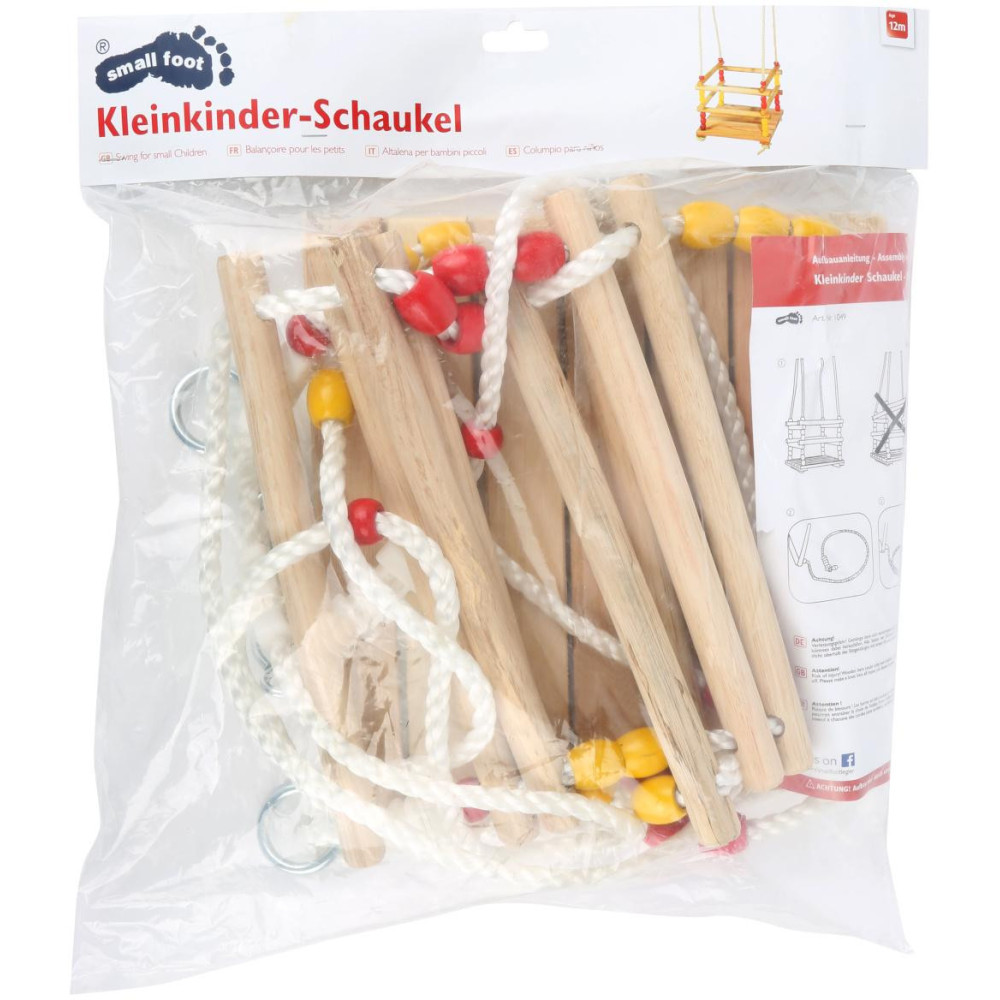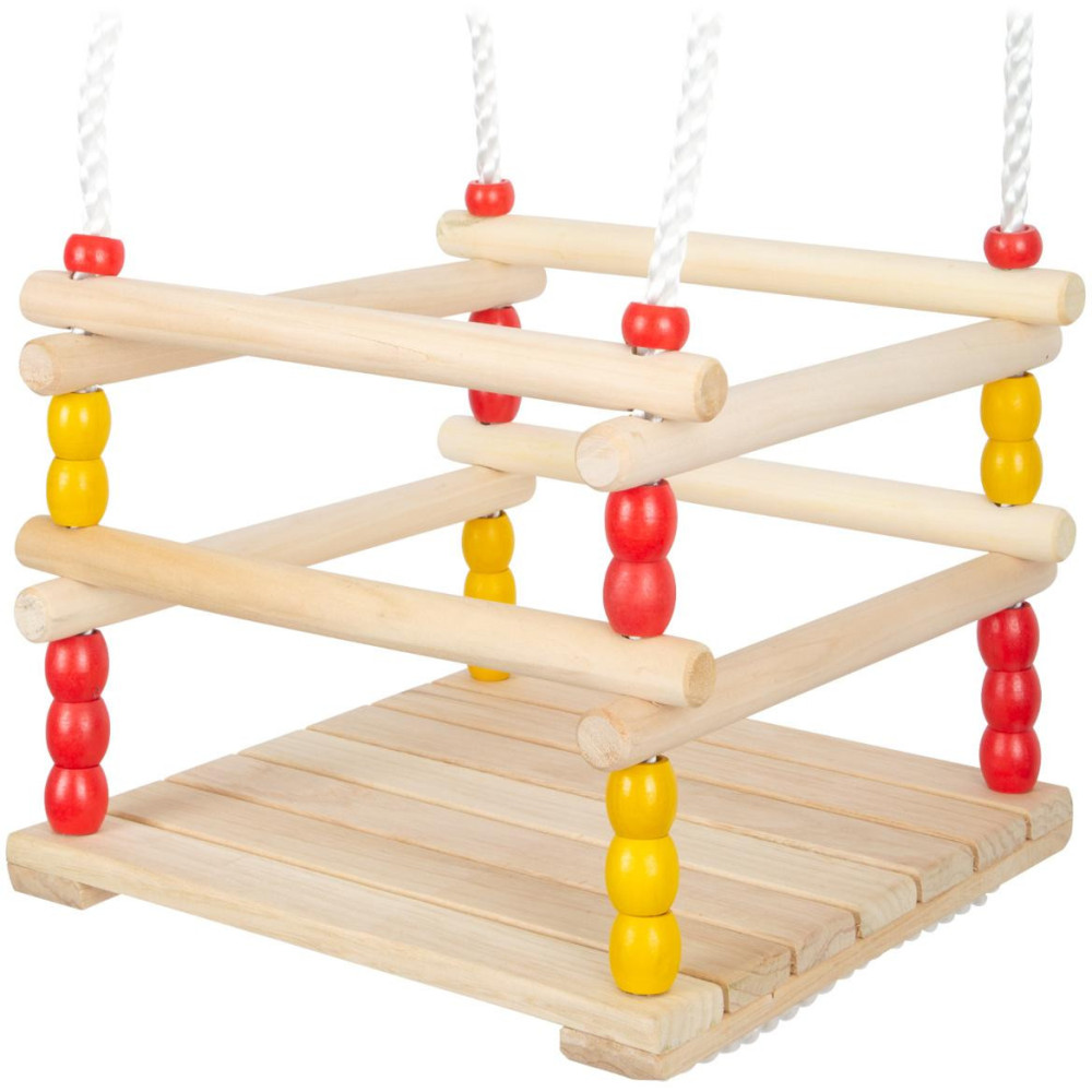 Dřevěná houpačka s hrazením, o které se děti mohou opřít a pevně se jej přichytit. Pevná plastová lana jsou na koncích opatřena kroužky k zavěšení a jejich délku lze pomocí kovových průvleků snadno nastavit. Houpačka je vyrobena z pečlivě opracovaného masivního dřeva a je dodávána ve složeném stavu, připravena k zavěšení.