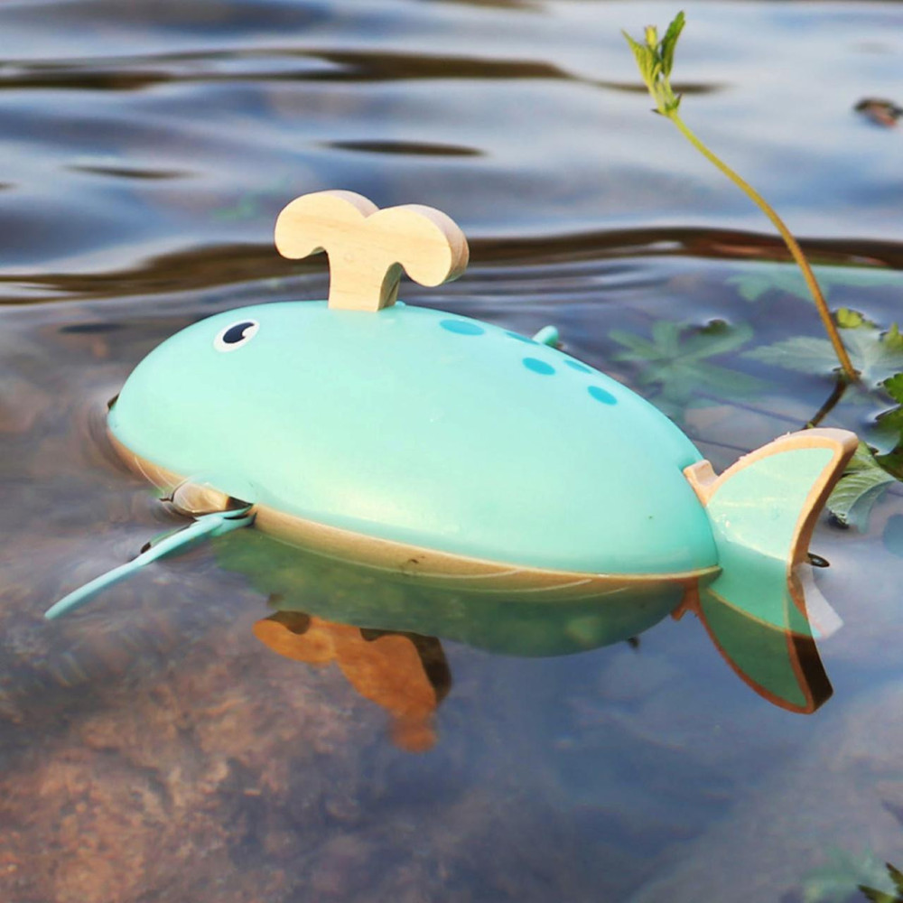 Tato roztomilá dřevěná hračka nabídne mnoho vodní zábavy. Děti si s ní mohou hrát ve vaně, na bazéně nebo u moře, velryba je jistě také naučí plavat! Díky praktickému natahovacímu mechanismu dokáže velryba plavat po vodě samostatně, má dvě ploutve. Vodní hračka, kterou musíte mít i ve svém vlastním mini oceánu. Vodní hračky vyrobené ze dřeva jsou ekologičtější alternativou plastových a gumových hraček. Při hře s velrybou se děti naučí o principu příčiny a následku, díky natahovacího mechanismu.