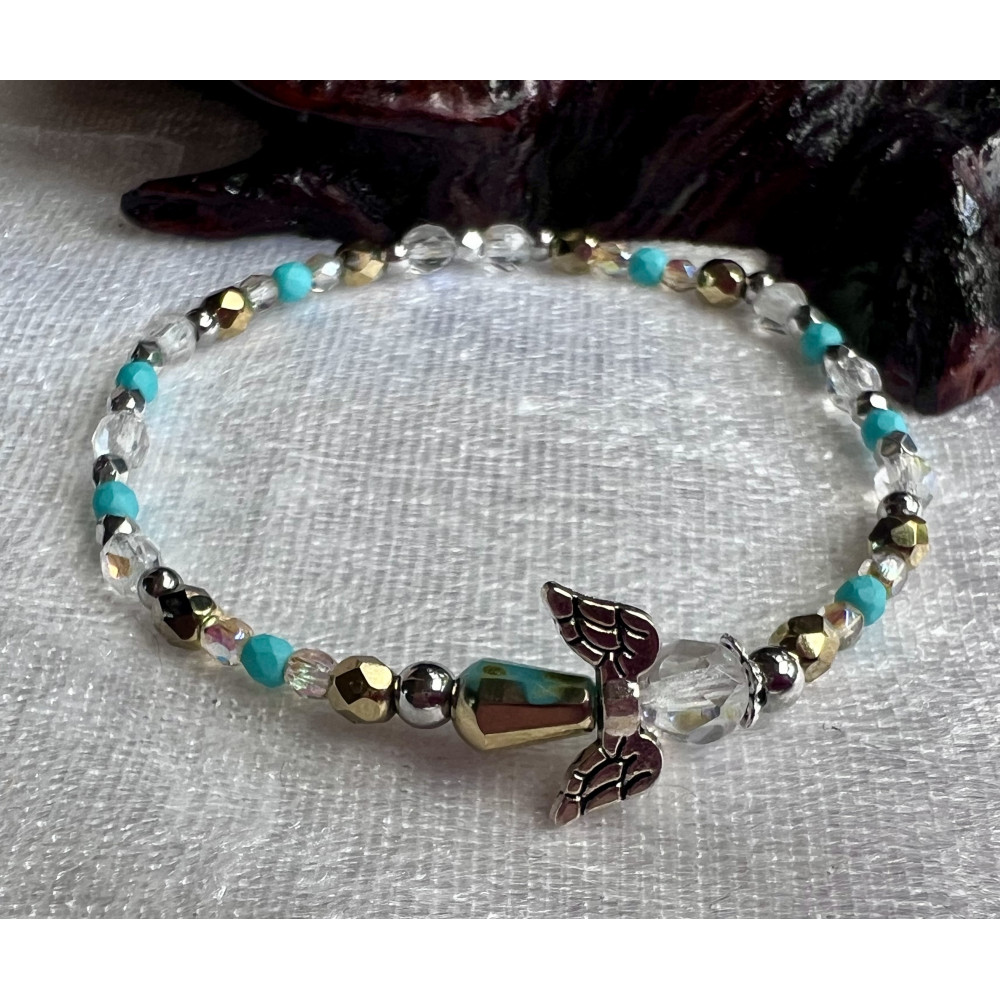 Alada beauty Náramek Exclusive s andílkem zlato-tyrkysový, andílek X.