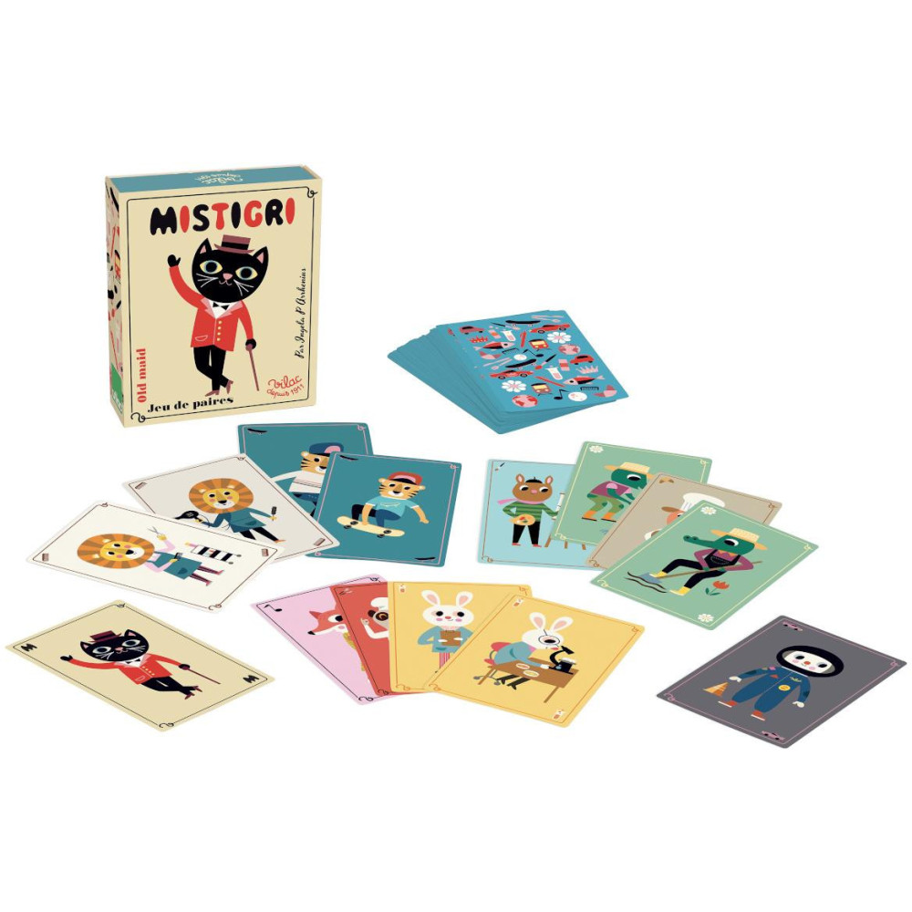 Klasická karetní hra v jedinečném provedení s ilustracemi výtvarnice Ingely P. Arrhenius Vás provede fantastickým světem zvířat v lidských rolích. Díky jednoduchým pravidlům a nezaměnitelnému zpracování ji děti budou chtít hrát stále znovu a prohlížet si přitom krokodýlí zahradníky, liščí hudebnice, opičího krále a královnu, nebo koalího astronauta. Střídejte se v tazích, vytahujte protihráči listy z ruky a odkládejte k sobě padnoucí páry karet. Komu nakonec zůstane lichá karta s Mistrigrim, zlomyslným kočičím gentlemanem?