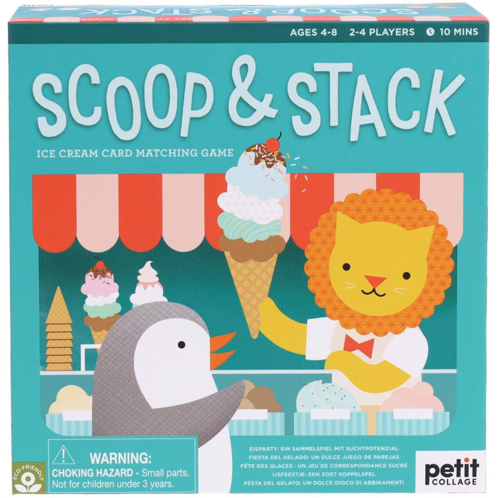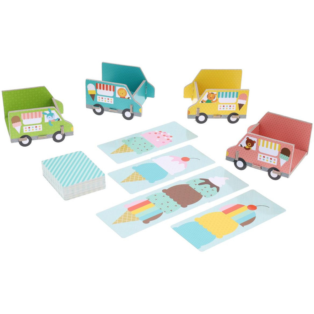 Mlsáte rádi? Tak to vás bude bavit tato zmrzlinová hra. Nasbírejte co nejvíce kopečků zmrzliny, vložte je do kornoutu… nezapomeňte na posypku! Materiály jsou šetrné k životnímu prostředí, 50 % recyklovaných materiálů, FSC papír, potištěno netoxickými rostlinnými inkousty. Vhodné pro 2-4 hráče od 4 let.