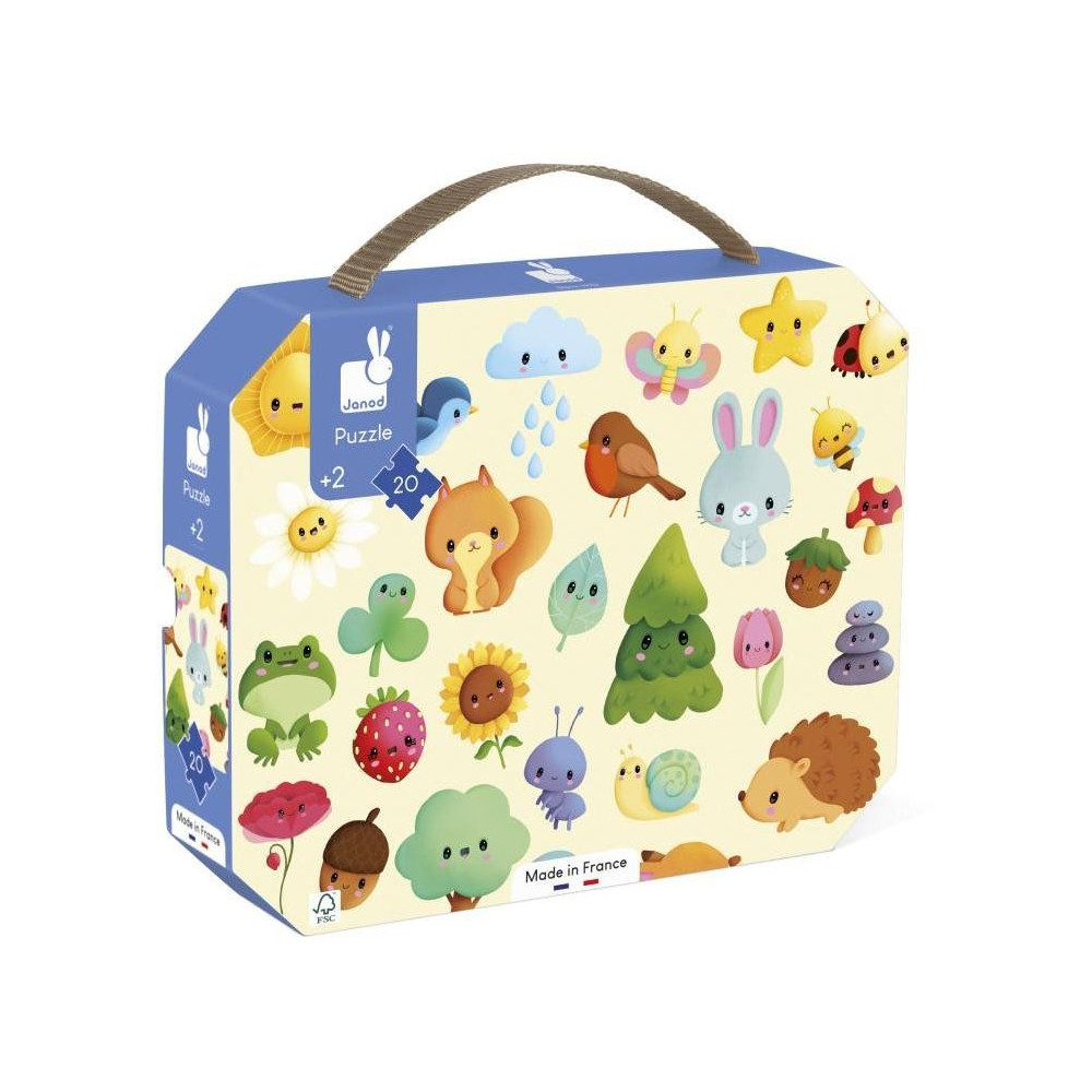 Tieto obrázkové puzzle obsahujú desiatky obrázkov a sú ideálne na zoznámenie malých detí s prírodou a obohatenie ich slovnej zásoby. Deti sa naučia vnímať svoje okolie na prechádzkach. Dieliky puzzle sú svojou veľkosťou vhodné pre malé ručičky, vďaka čomu sa s nimi ľahko manipuluje. 20-dielne puzzle vyrobené vo Francúzsku z kartónu s certifikátom FSC™ a atramentov na rastlinnej báze. Vhodné pre deti od 2 rokov.