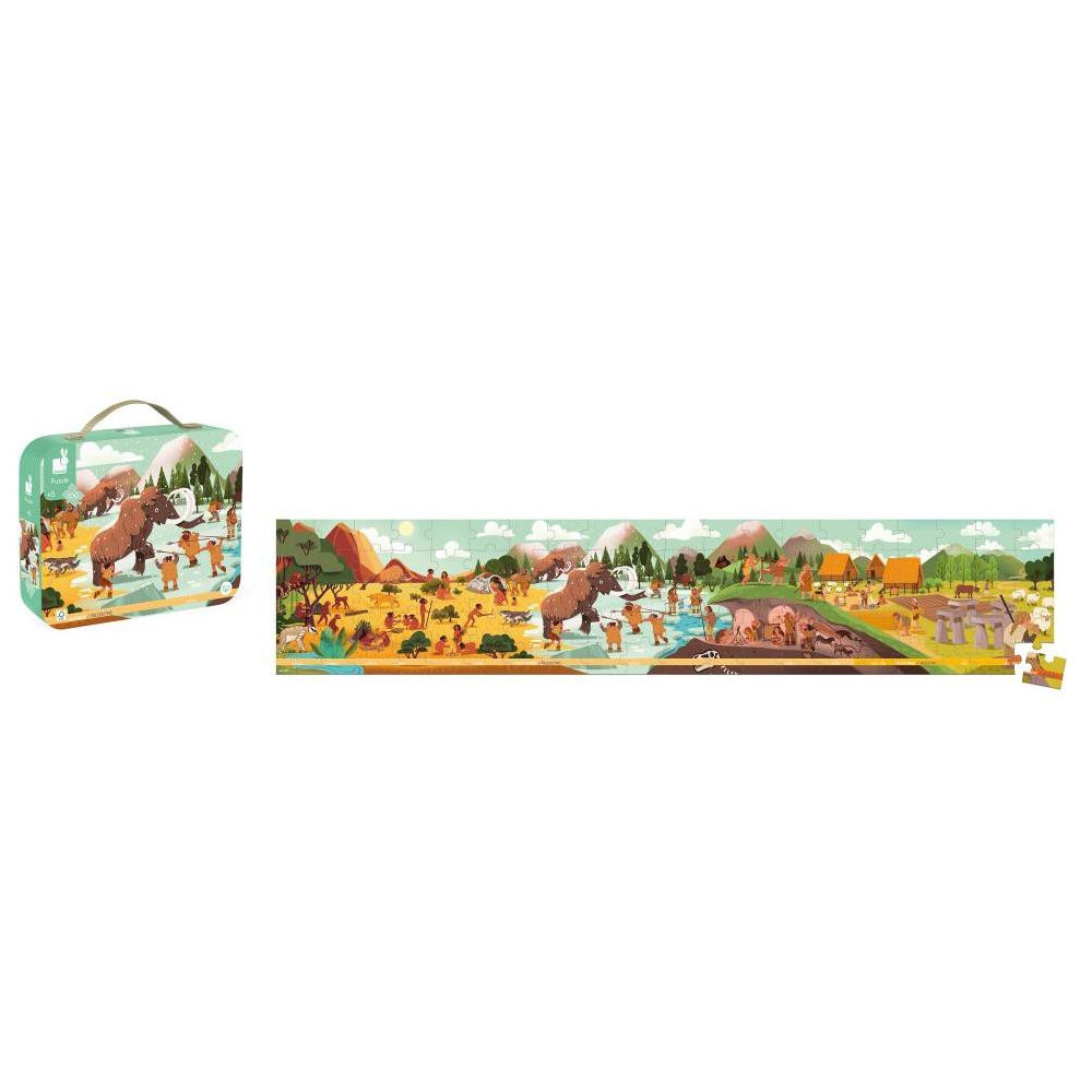 Čaká ťa cesta časom! Ponorte sa do obdobia neolitu s týmto 100-dielnym ilustrovaným puzzle s tematikou prehistórie, ktoré je vhodný pre deti od 6 rokov. Toto panoramatické puzzle s rozmermi 100 x 20 cm úplne vtiahne deti do fascinujúceho obdobia paleolitu. Dieliky sú ideálne pre malé ručičky a pomáhajú rozvíjať jemnú detskú motoriku. Táto vzdelávacia skladačka je tiež ideálna na stimuláciu koncentrácie a trpezlivosti. Je to zábavný spôsob, ako sa učiť históriu! Priložený plagát možno použiť ako predlohu a obsahuje aj historické informácie na posilnenie vzdelávacej hodnoty puzzle. Puzzle sa preto stáva detskou cestnou mapou k objavovaniu: od praveku po starovek. Deti potom môžu toto puzzle použiť ako hru Hľadaj a nájdi a môžu sa vyzvať, aby identifikovali všetky detaily, ktorými sa naše puzzle len tak hemží, od najväčšieho (t. j. mamuta srstnatého) po najmenšieho (napr. grilovanú rybu). Puzzle sa dodáva v peknej krabici v štýle kufríka s uškom, vďaka čomu je praktické na skladovanie aj prepravu. Deti aj dospelí sa môžu spoločne hrať v pokojnej a upokojujúcej atmosfére: ideálna príležitosť učiť sa a stimulovať predstavivosť tých najmenších. Tak čo, ste pripravení na cestu časom? Toto puzzle je vyrobené vo Francúzsku s použitím rastlinných atramentov a kartónu FSC™..Rozmer poskladaného puzzle je 100 x 20 cm.Je vohodné pre deti od 6 rokov