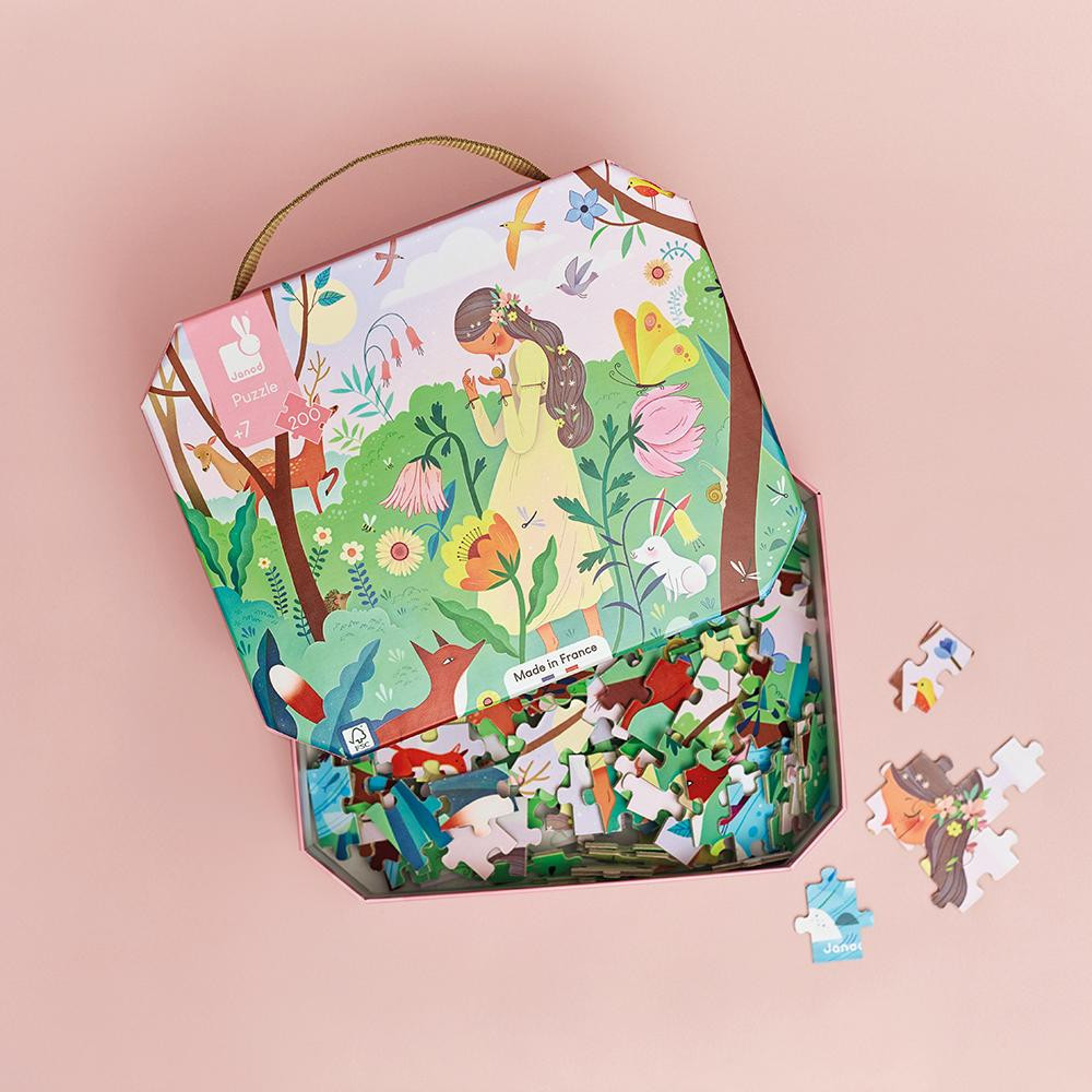 Poďme spolu na výlet do prírody a straťme sa uprostred lesa a sadnime si na lúku! Vďaka tomuto kartónovému puzzle pre deti od 7 rokov sme pripravení na výlet do prírody. Predstavte si svet, v ktorom každý kúsok skladačky poskytuje pohľad na prírodu a jej krásy. Objavte tento svet s naším 200-dielnym ilustrovaným puzzle. Dobrodružstvo začína hneď po otvorení kufríka: pred očami vašich detí ožije obrázok s rozmermi 50 x 40 cm. Líšky, jelene, vtáky a králiky sa zaraz objavia v tomto čarovnom a farebnom vesmíre. Každý kúsok pôsobí ako krok na ceste poznávania prírody, ktorý je výzvou pre jemné motorické zručnosti a koncentráciu. Toto puzzle je oveľa viac než len hra, je to pokojná a upokojujúca činnosť pre všetky vekové kategórie. Na prevedenie mladších detí týmto dobrodružstvom je k dispozícii plagát, ktorý možno použiť ako predlohu na skladanie alebo ako peknú dekoráciu detskej izby. Tak čo, ste pripravení vydať sa so svojimi deťmi na túto cestu plnú prírody? Puzzle je prenosné a skladné vďaka praktickému baleniu v tvare kufríka s uškom, je ideálne na rozvoj trpezlivosti a jemnej motoriky. Vieme, aká je príroda vzácna, a preto sme sa rozhodli pre prírodné materiály, ako sú rastlinné atramenty a suroviny zo zodpovedne obhospodarovaných lesov. Toto kartónové puzzle FSC™ je vyrobené vo Francúzsku.Puzzle pre deti od 7 rokov.