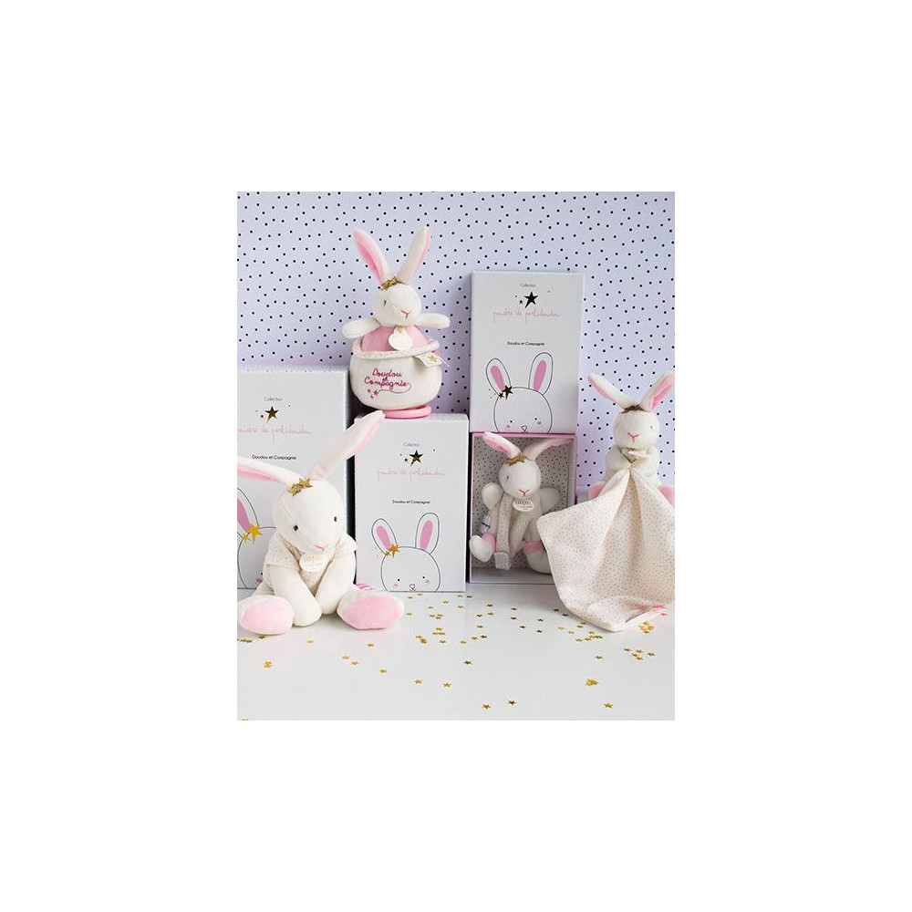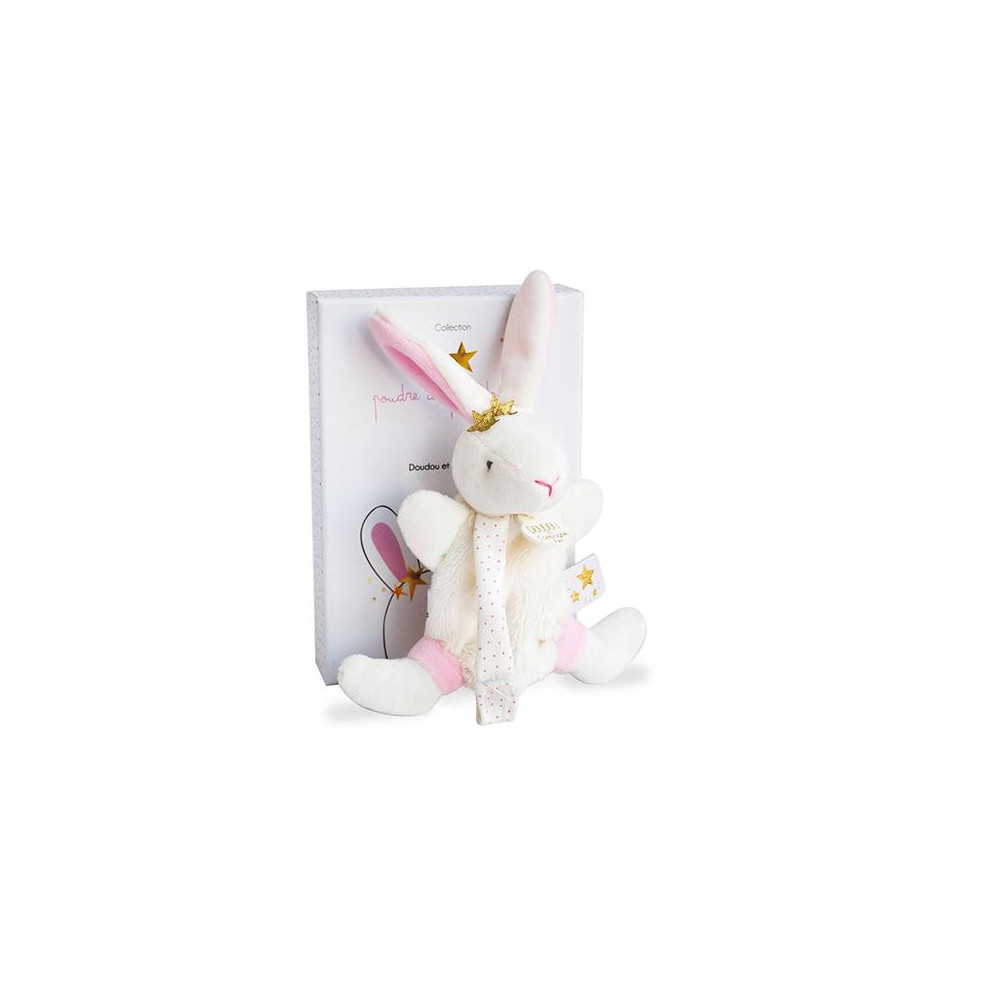 Plyšový králíček je 2v1, držák na dudlík a hračka. Doprovází miminko od narození, aby mu přinesl hebkost, pohodlí a také držel dudlík v jeho blízkosti. Je to velmi pěkný dárek k Vánocům nebo k oslavě narození miminka. Je extrémně měkký a příjemný na dotek. Rozkošný králíček je posazený do nádherné dárkové krabičky s grafikou evokující modernost i luxus.