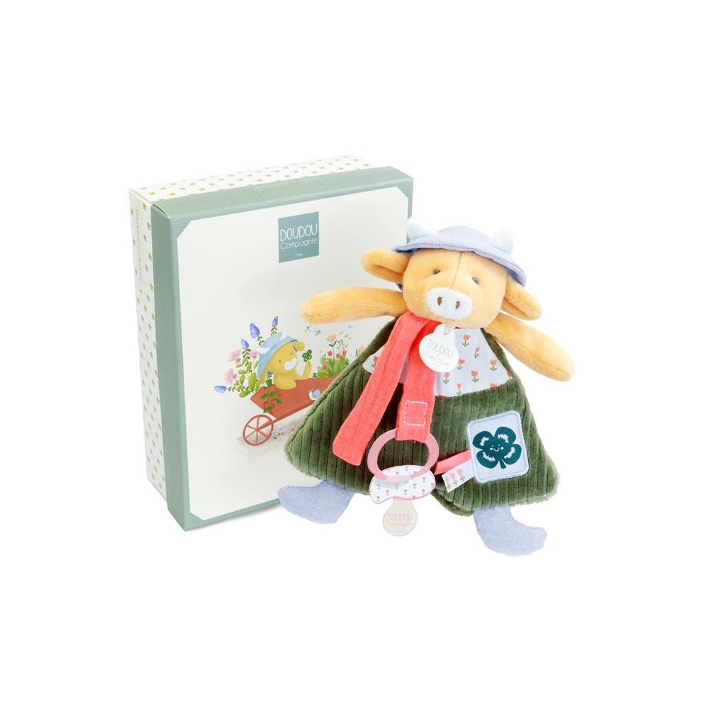 Doudou Dárková sada Plyšová kravička Aneth s úchytem na dudlík 19 cm