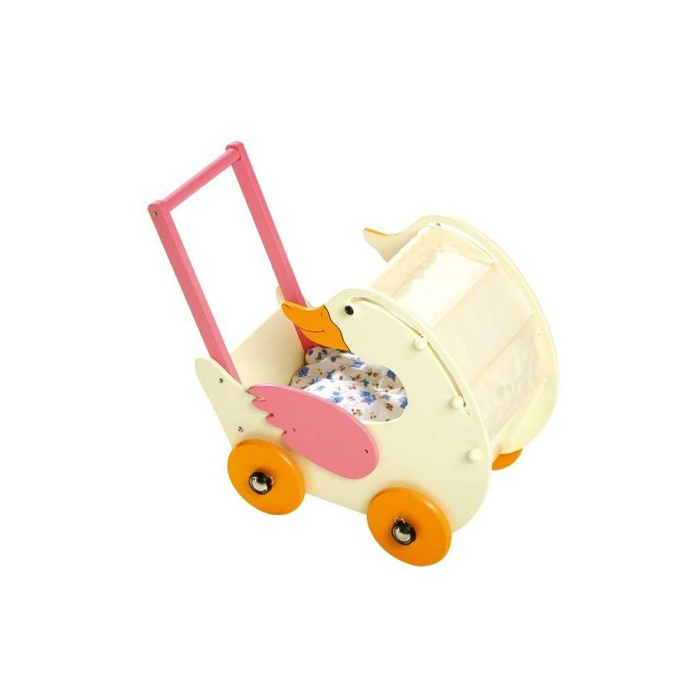 Kočárek v designu husy se stahovací plátěnou střechou – z barevně lakovaných desek MDF. Německá firma Legler zaměřená na výrobu kvalitních dřevěných hraček od roku 1996. Všechny dřevěné hračky značky Small Foot mají označení CE a jsou vyráběny dle evropské normy pro bezpečnost hraček EN 71. Použité barvy jsou speciálně vyvinuty pro dřevěné hračky a jsou odolné i proti slinám dětí. Dřevo, které se používá pro tyto hračky většinou pochází z lesnických společností zapojených do zalesňování. To nabízí všem zákazníkům možnost přispět k zachování přirozeně rostoucích lesů. Dřevěné hračky small foot jsou zářivě barevné produkty, které jsou vyrobeny převážně z přírodních surovin - dřeva. Dětem dělají radost od útlého věku, rozvíjí jejich hmatové a smyslové dovednosti. Cílem značky small foot je podporovat duševní a fyzický vývoj dětí.
