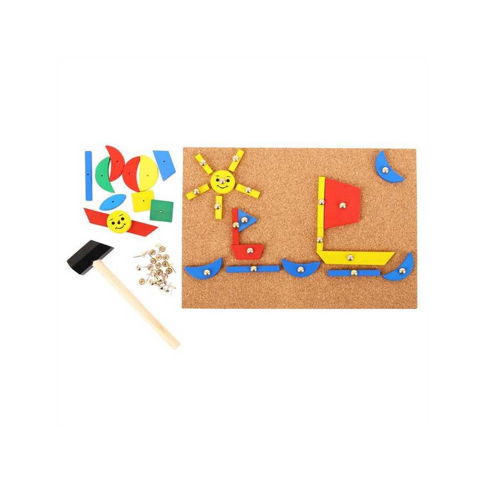Připínací desky, oblíbené mezi generacemi, nikdy nevyjdou z módy. Pestrobarevné dřevěné tvary lze kombinovat nejen dle přiložených předloh, přiloženým kladivem připínat na korkovou desku pomocí lesklých připínáčků (součástí balení), a vytvářet tak nekonečné množství různých stavebních scén. Zahrnuta jsou stavební vozidla, nářadí, značení atd. Hra poslouží jak individuálním, tak interaktivním vzdělávacím a kreativním hrám. Rozvíjí jemnou motoriku, koordinaci zraku a rukou, obratnost a soustředění. Vyhovuje současným evropským bezpečnostním normám.