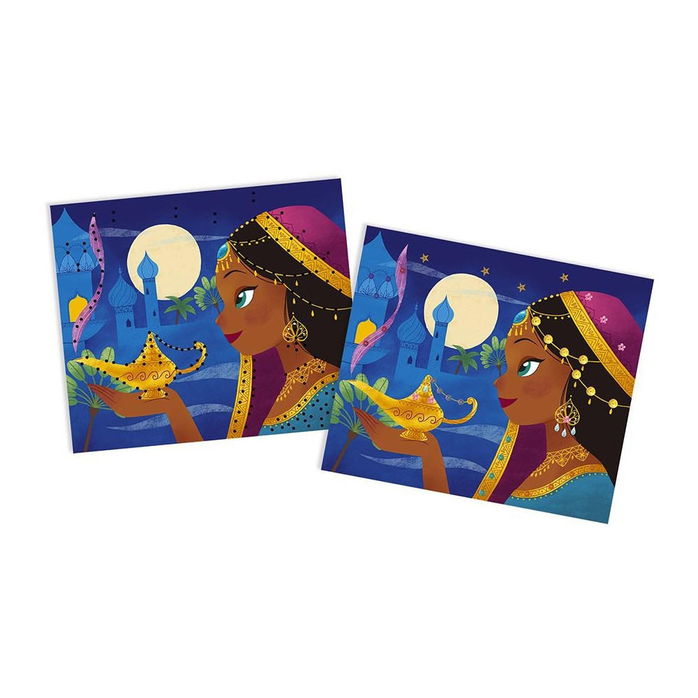Midi sada Janod Atelier na tvoření a podporu dovednosti a představivosti u dětí. Kreativní hračky pro děti nezabírají mnoho místa, jsou vhodné na cesty i na doma, ve zdraví i nemoci a zabaví děti na dlouhé hodiny. Tvoření různými technikami podporuje soustředění a koncentraci, přirozené zkoumání a výtvarné schopnosti. Kreativní sada Obrázky s flitry na přišívání Tisíc a jedna noc obsahuje 5 karet s krásnými motivy Tisíce a jedné nocy, 3 barevné bavlněné nitě, jehlu, více než 150 flitrů pěti tvarů a pěti barev, které děti přišívají na karty. Při této tvůrčí hře si děti rozvíjejí jemnou motoriku, trpělivost, smysl pro detail a učí se i nové aktivitě - přišívání. Balení obsahuje 5 karet, více než 150 flitrů na přišívání, jehla, 3 nitě, navlékač. Rozměr je 22 x 4 x 26 cm Vhodné pro děti od 7 let