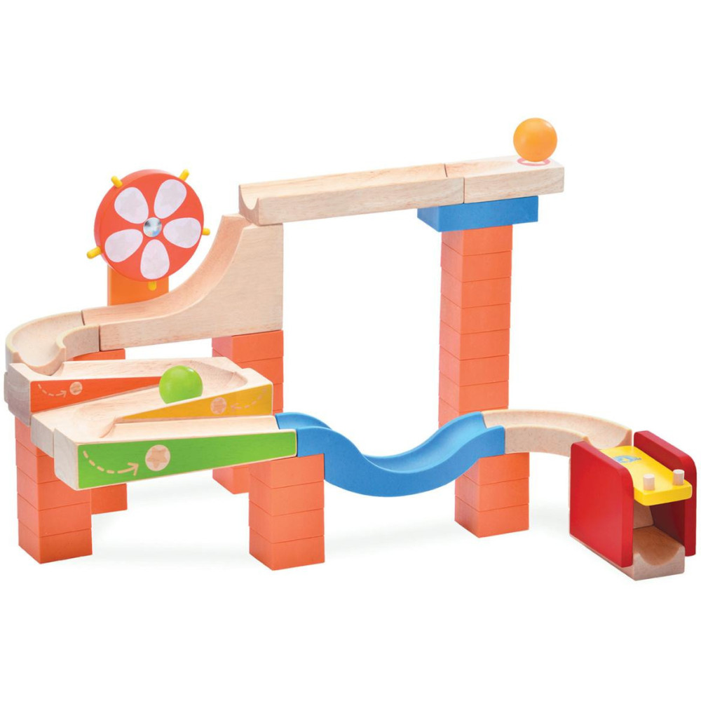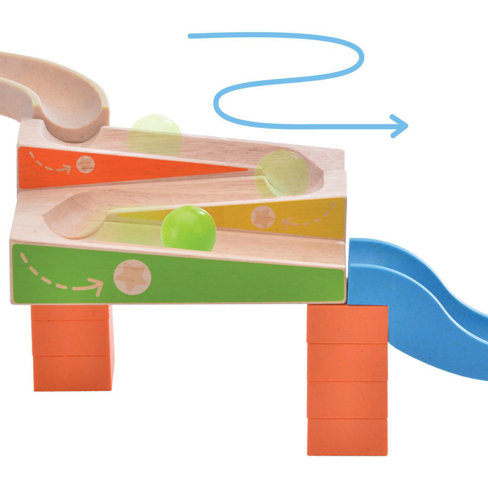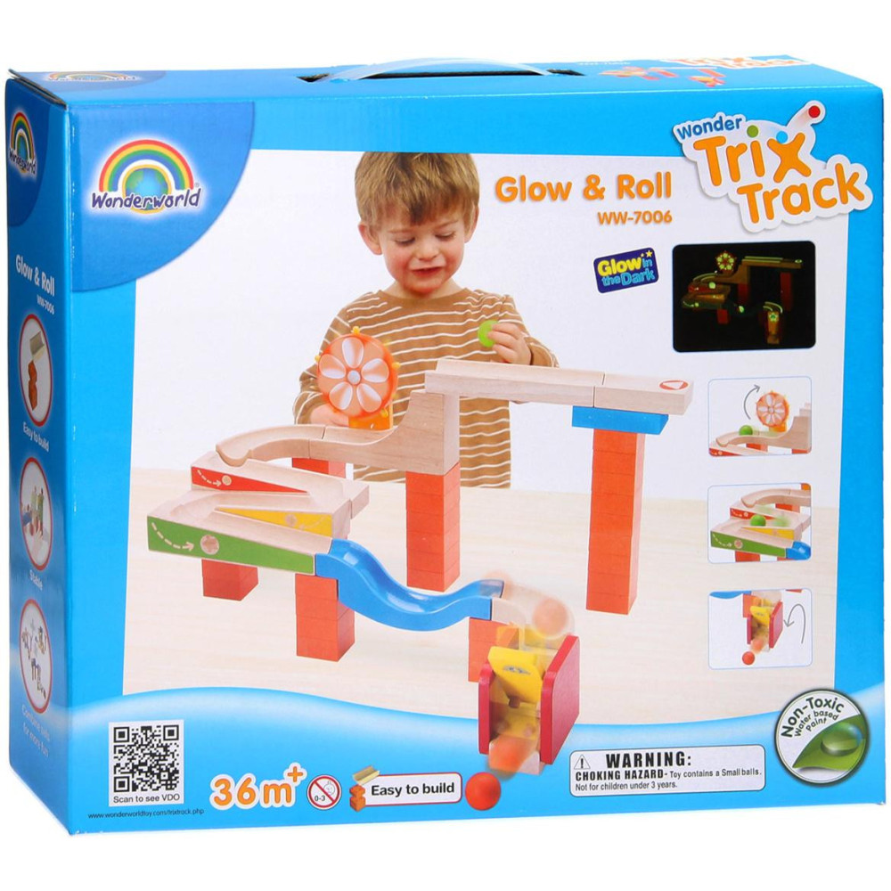 Ukázka kuličkové dráhy Wonderworld TRIX® Svítící kolo. S kuličkovými dráhami ze série TRIX® od firmy Wonderworld si užijete spoustu skvělé zábavy. Díky své variabialitě, nápaditosti a propracovanému konceptu celé série TRIX® se jedná o velmi hodnotnou hračku, kterou ocení jak děti, tak dospělí hráči. Všechny kuličkové dráhy ze série TRIX® lze vzájemně kombinovat, a stále tak zvedat laťku kombinací a zábavy. Svou ohromnou variabilitou rozvíjí dětskou představivost, možnosti sestavení jsou téměř nekonečné. Sestavená dráha je vždy stabilní díky promyšlenému a jednoduchému systému spojování dílů. Základní stavební díly jsou vyrobeny z dřevoplastu, vlastní dráha pak převážně z masivního dřeva. Součásti nabízí kvalitní hladkou povrchovou úpravu a kombinaci atraktivních sytých barev s barvou přírodního dřeva. Stavebnice je spolu s obrázkovým návodem k sestavení dodávána v pestře potištěné kartonové krabici vybavené praktickým plastovým uchem k přenášení. Dráhy lze doplnit také drobným příslušenstvím, základními kostkami a ozdobnými kuličkami, které naleznete v naší nabídce. Hlavní vlastnosti:44 dílů celkem, 2 nápadité překážkysystém spojení zaručující stabilituodolné provedenívytříbená barevnost a povrchová úpravalze kombinovat s dalšími dráhami ze sortimentu výrobce Ukázka možné kombinace kuličkových dráh Wonderworld TRIX®. Ukázky možných kombinací dráhy Svítící kolo s dalšími dráhami Wonderworld TRIX®: