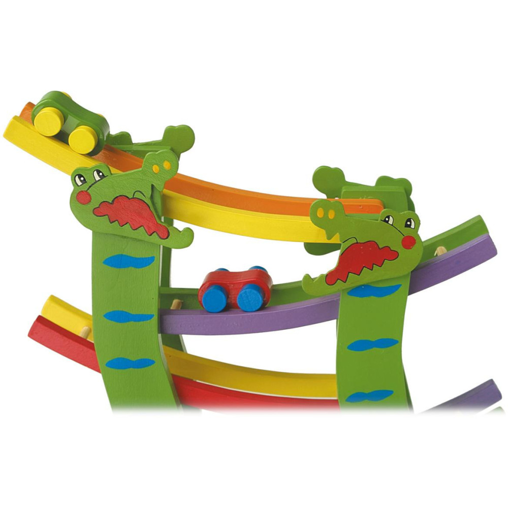 Pojďme si hrát! Na této husté a designové závodní dráze si užijete mnoho zábavy. Pestré barvy a kousající hlavy krokodýla vás lákají k závodu. Položte autíčka na start a nechte je sjet až dolů, které auto vyhraje? Rychlá zábava pro všechny milovníky krokodýlů!