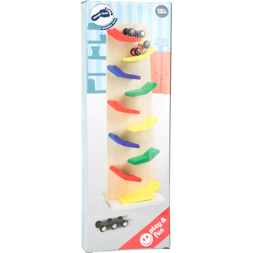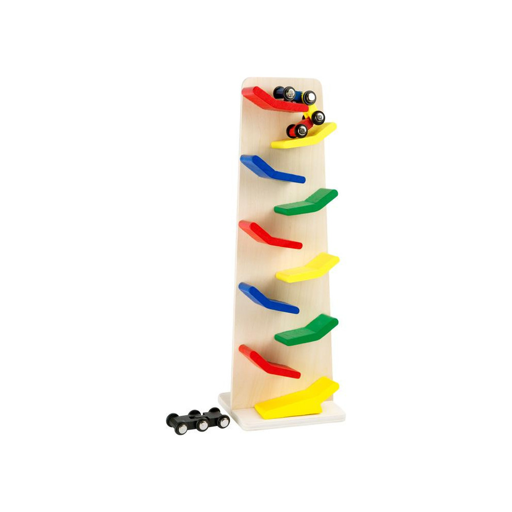 Malí fanoušci aut si s touto dřevěnou kaskádovou věží přijdou opravdu na své, protože je tu zábava pro jejich oči i uši. Po uvolnění malé kloubové vozy sjíždějí po rampách. Dřevění závodníci se řítí po dráze, takže s každým sjezdem děti zažijí spoustu zábavy.