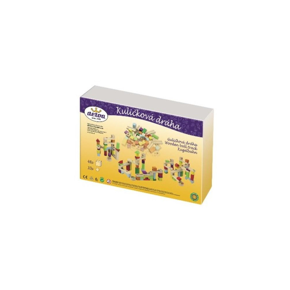 Kuličková dráha s dřevěnou kuličkovou dráhou, zabaví nejen Vaše ratolesti. I dospělí se rádi vrátí do dětských let. Sada obsahuje 48 dřevěných dílků a 10 dřevěných kuliček.