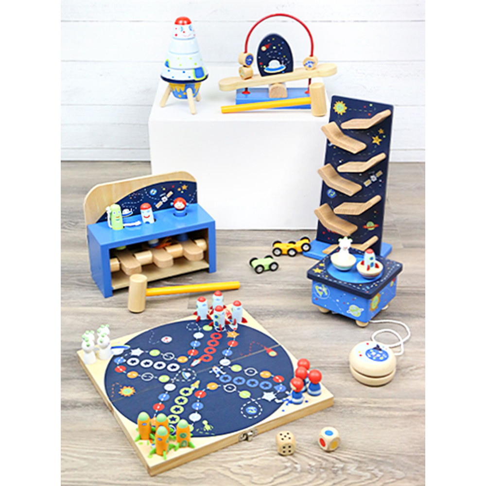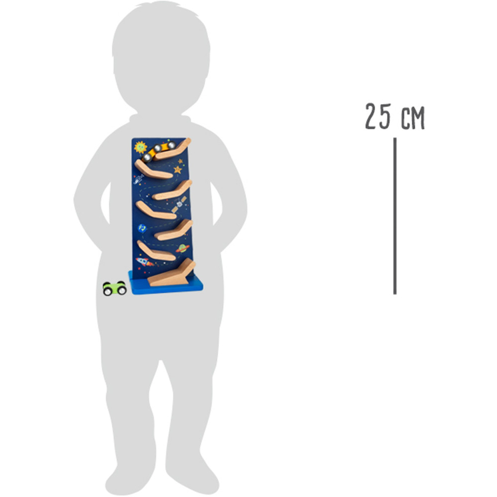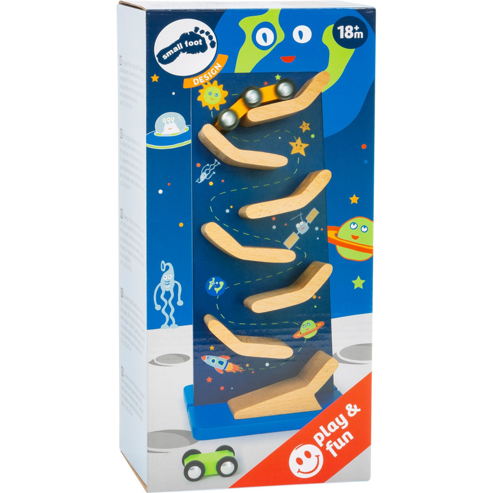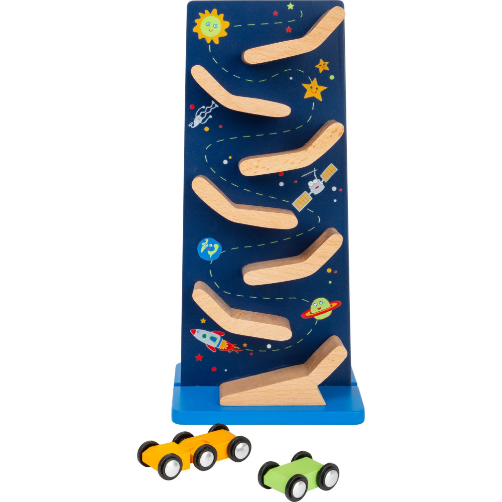 Oběžnou dráhou rychlostí světla! Tato dřevěná kaskádová dráha s motivem vesmíru nadchne všechny mladé astronauty. V balení jsou dvě autíčka, která při jízdě dolů dělají přemety. Galaktická zábava v dětském pokoji!