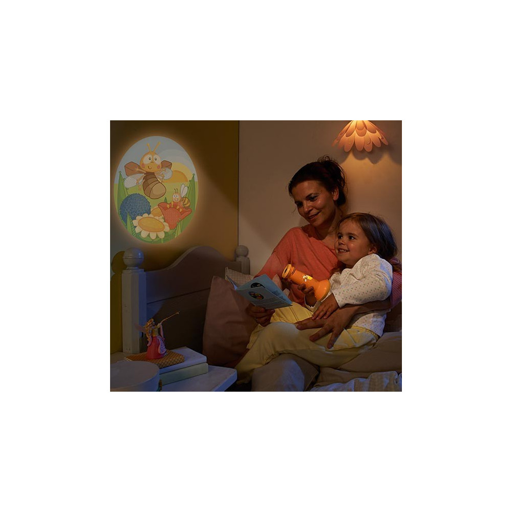 Tento projektor do kapsy má 3 funkce: tlumené světlo, projektor a klasická baterka. Otočením přední části projektoru se střídá celkem 6 roztomilých obrázků, které děti mohou promítat na zeď a při jejich sledování klidně usnout.