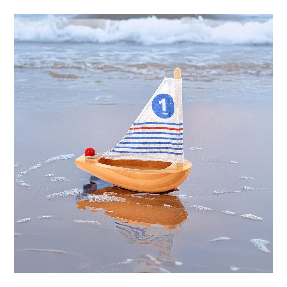 Vzhůru na palubu! U kormidla dřevěné plachetnice bude moci Váš malý námořník vyplout na širé moře a prožít spoustu dobrodružství. Díky svým čistým liniím a voděodolnosti je plachetnice schopna čelit vlnám jezírek, bazénů nebo vany. Po každém použití se doporučuje plachetnici důkladně vysušit.