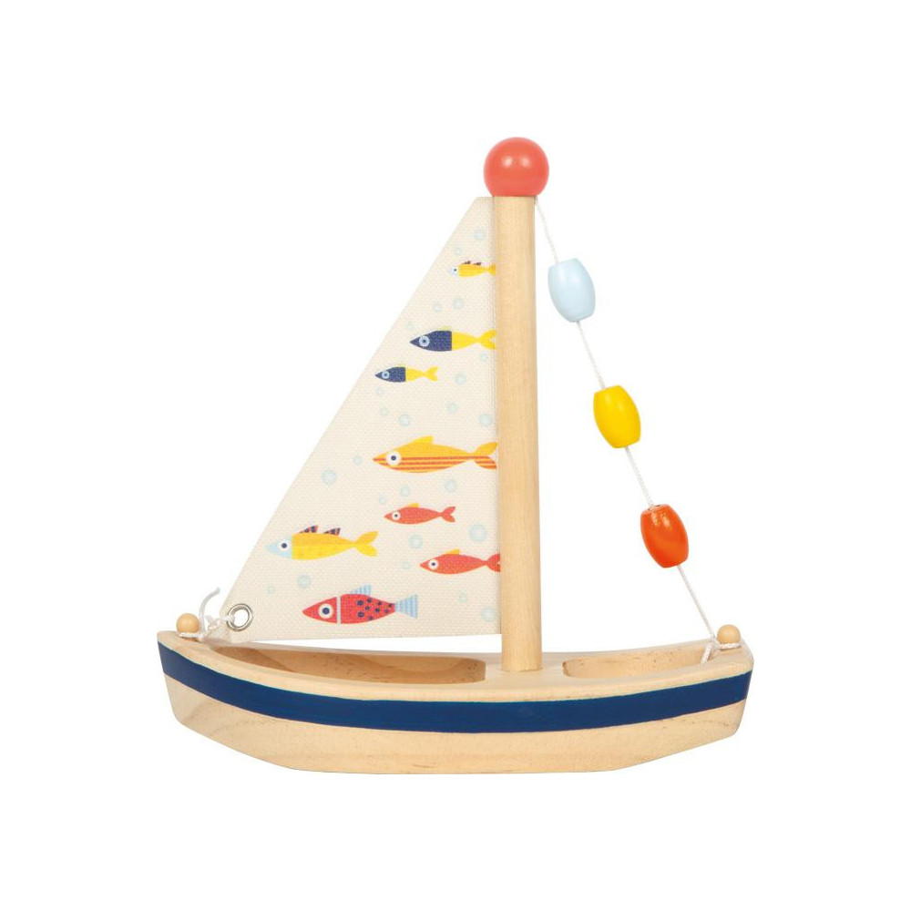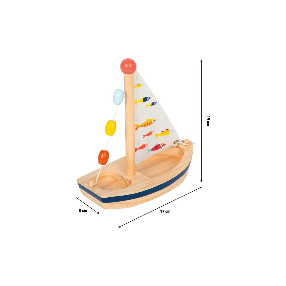 Tato dřevěná plachetnice zve děti do světa dobrodružných námořních her. Díky své praktické velikosti je ideálním společníkem pro vodní radovánky – ať už doma ve vaně, nebo na letním výletě k vodě. Jako dřevěná hračka podporuje udržitelný způsob hraní a představuje skvělou alternativu k plastovým lodím. Plachta s roztomilými ilustracemi rybiček, malé dřevěné korálky jako dekorativní prvek, dostatek prostoru na palubě pro figurky a pevné zpracování dělají z této lodi odolnou a zároveň stylovou hračku. Tato ekologická vodní hračka je malá, lehká a ideální na cesty. Po každém použití ji stačí důkladně osušit – a může znovu vyplout na další dobrodružnou plavbu. Skvělý tip na dárek pro všechny malé milovníky vody.