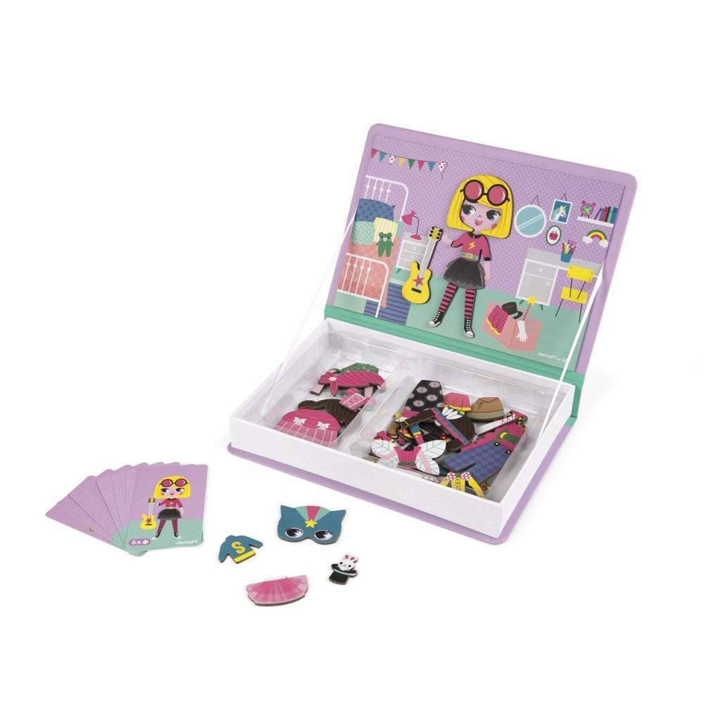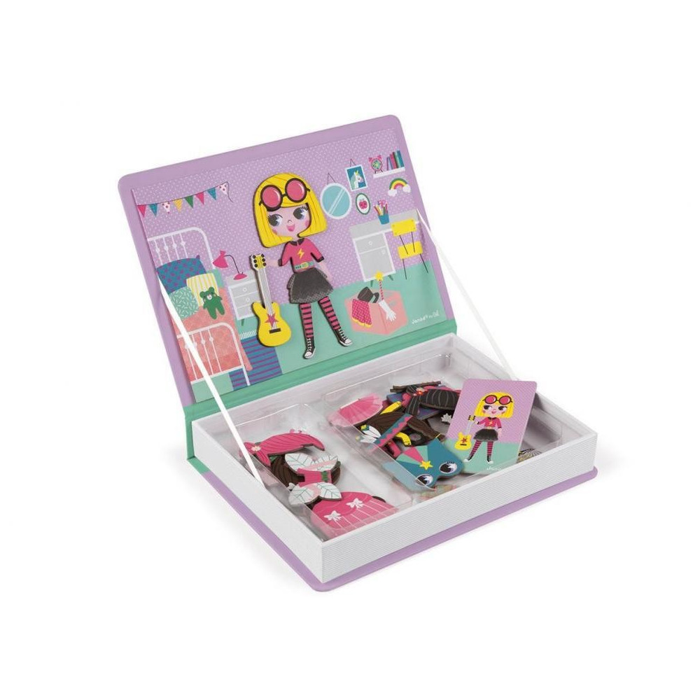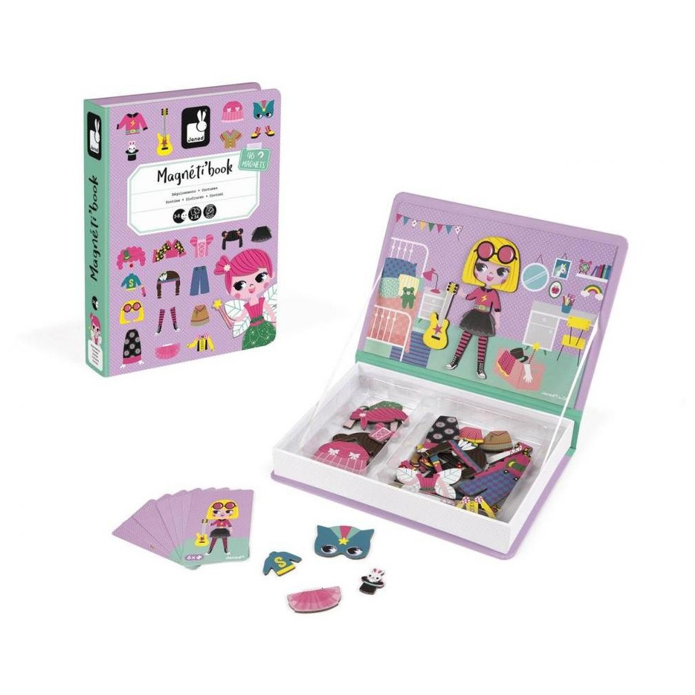 Kniha Magneti'Book Girl 's Outfits je fantastická magnetická hračka od výrobce Janod. Je to krásná hračka vhodná pro děti od 3 do 8 let. Magnetická skládačka ve tvaru knihy má maximálně zajímavý design, kterým nepohrdne ani jedna malá slečna. Zabavte vaše děti skládáním obrázků z magnetických dílků podle předlohy. Dítě vybírá různé oblečení pro dívku na knize, nejprve podle předlohy a potom podle vlastní fantazie. Magnetická dětská hračka obsahuje 8 kartiček s předlohami a & nbsp; 46 magnetických dílků, skvělá pro malých módních návrhářů. Praktické balení zajistí, že se hračka dá pohodlně přenášet, děti se s ní zabaví nejen doma, ale i na dlouhých cestách. Magnetická kniha pro děti je krásná nadčasová hračka pro každé dítě, která se bude líbit několika generacím, vyrobená z kvalitních materiálů a zdravotně neškodných barev. Příslušenství: 46 magnetů + 8 karet Materiál: Karton Rozměry: 19 x 4 x 26 cm