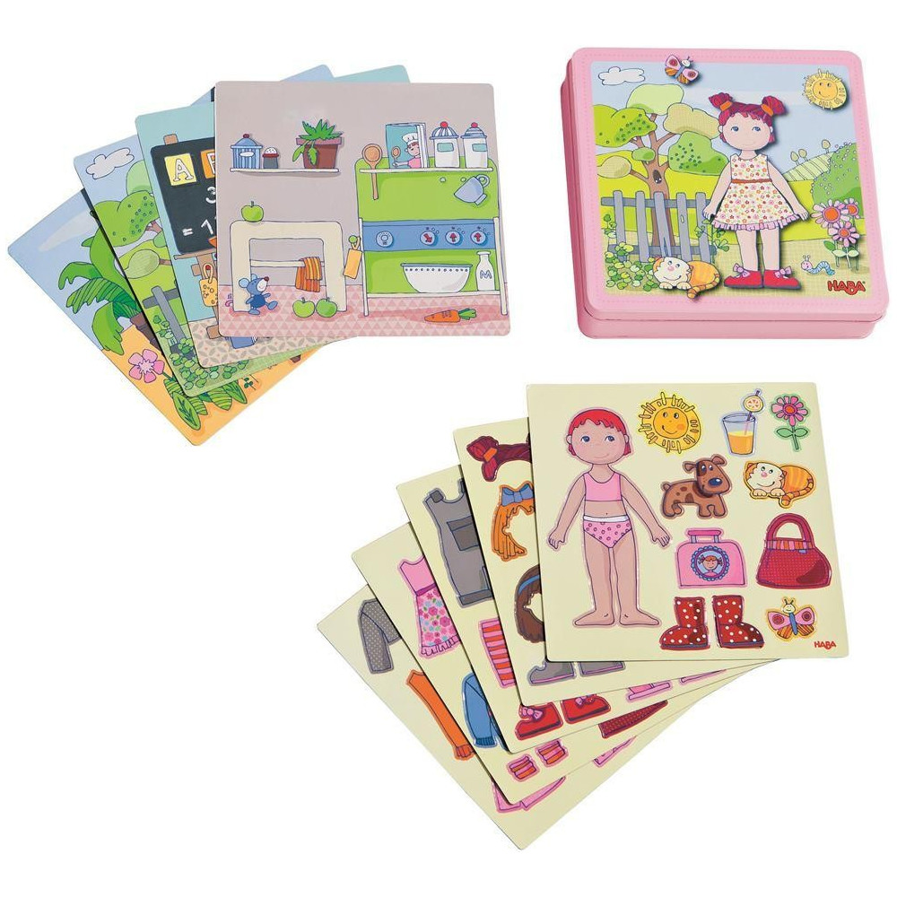 Balení v praktickém plechovém boxu vhodném i na snadné přenášení, nebo využití při cestovaní.Obsahom balení jsou 4 obrázky různého prostředí, kde se panenka Lilly nachází (doma, venku) a 54 magnetických kousků na oblékání. Vhodné pro děti: od 3 let Rozměry boxu: 20,5 x 20,5 cm Materiál: kov, magnetická fólie < / P>