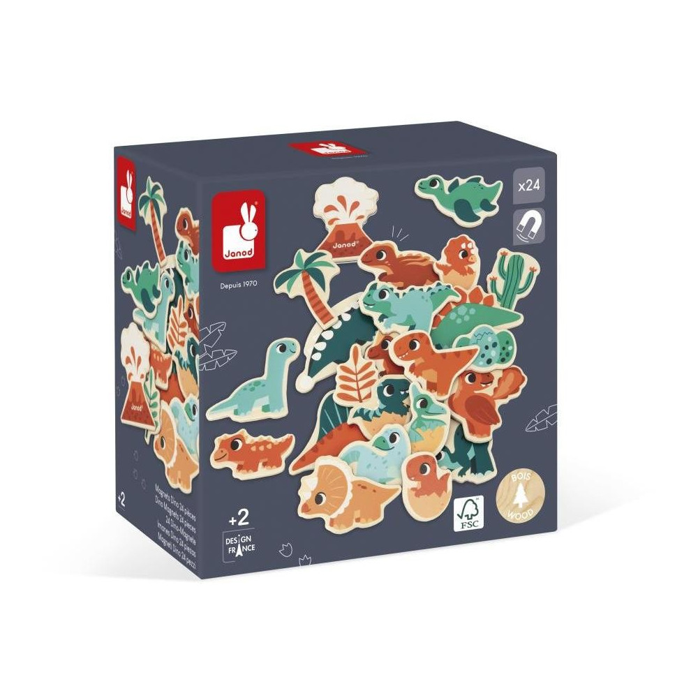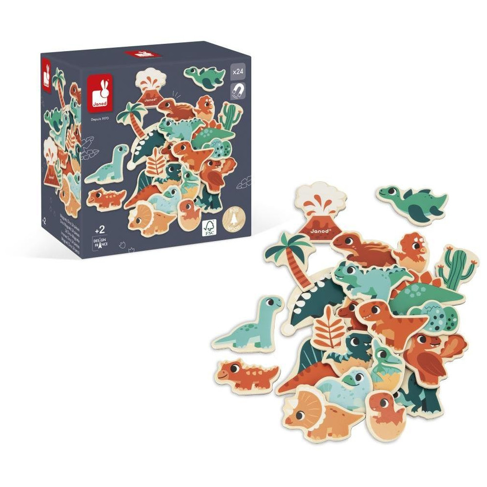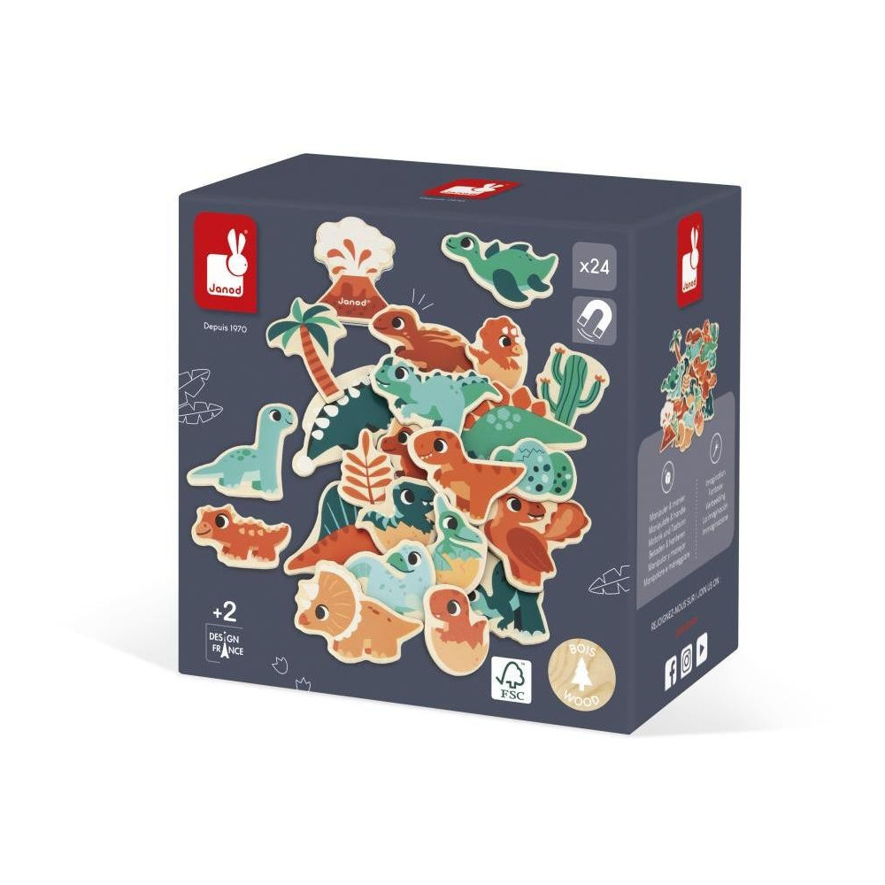 Vydajte sa na cestu časom do sveta dinosaurov s našimi Dino magnetkami! Veľké príbehy sa dajú vymyslieť so Spinosaurom, Stegosaurom, Pteranodonom a všetkými ostatnými. Táto sada sa skladá z 24 drevených magnetiek, ktoré je možné umiestniť na magnetické dosky, alebo akýkoľvek iný magnetický povrch. Vaše dieťa bude môcť pri zábave rozvíjať svoju fantáziu a zručnosť. Drevená hračka FSCTM. Pre deti od 2 rokov.
