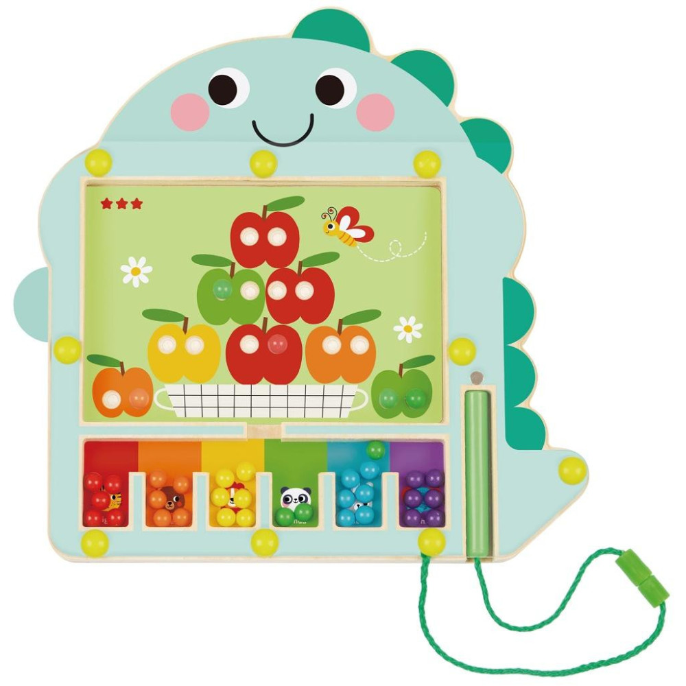 Naučte se třídit barvy s dinosaurem! Toto magnetické bludiště je fantastickým doplňkem do každého pokojičku či herny. Zábavná a vzdělávací hračka, která je inspirována Montessori hračkami napomáhá rozpoznávání barev a logickému myšlení. Rozvíjí jemnou motoriku a kognitivní funkce, procvičuje koordinaci ruka-oko. Obsahuje deset karet pozadí. Dokážete správně přiřadit kuličky do otvoru, kam patří podle barvy?
