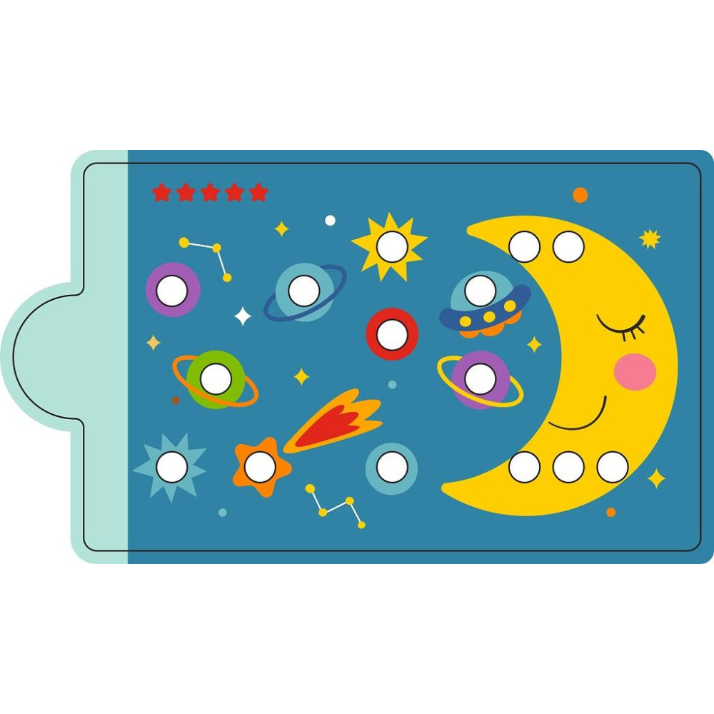 Rozměry: 20x18,5x1,8 cm Rozměry balení: 22x3,2x22 cm Věk: 2+ Materiál: FSC dřevo, magnet, tkanina, plast 10 karet pozadí